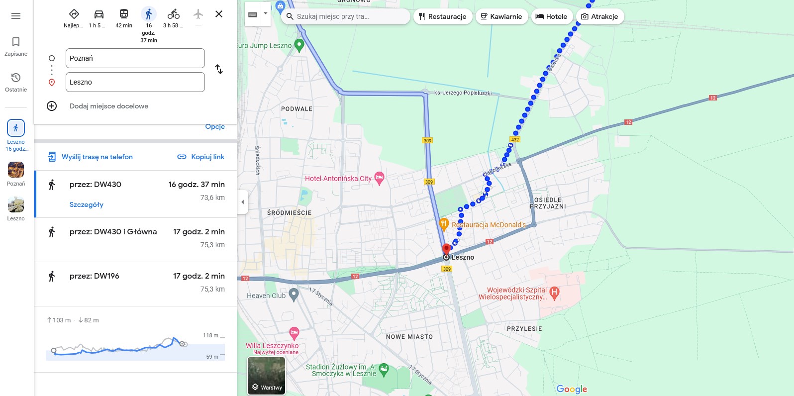 Miernik odległości. Czy wiesz, że Mapy Google’a pozwolą Ci zmierzyć dokładną odległość pomiędzy wybranymi punktami? Jeśli chcesz dokonać pomiaru, kliknij na mapie prawym przyciskiem myszki w miejscu, skąd chcesz zacząć pomiar i wybierz opcję “Zmierz odległość”. Następie kliknij na miejscu docelowym i gotowe – masz dokładny wynik. Co ważne, możesz dodać kolejne punkty, dzięki czemu da się stworzyć dłuższą trasę z podziałem na etapy.