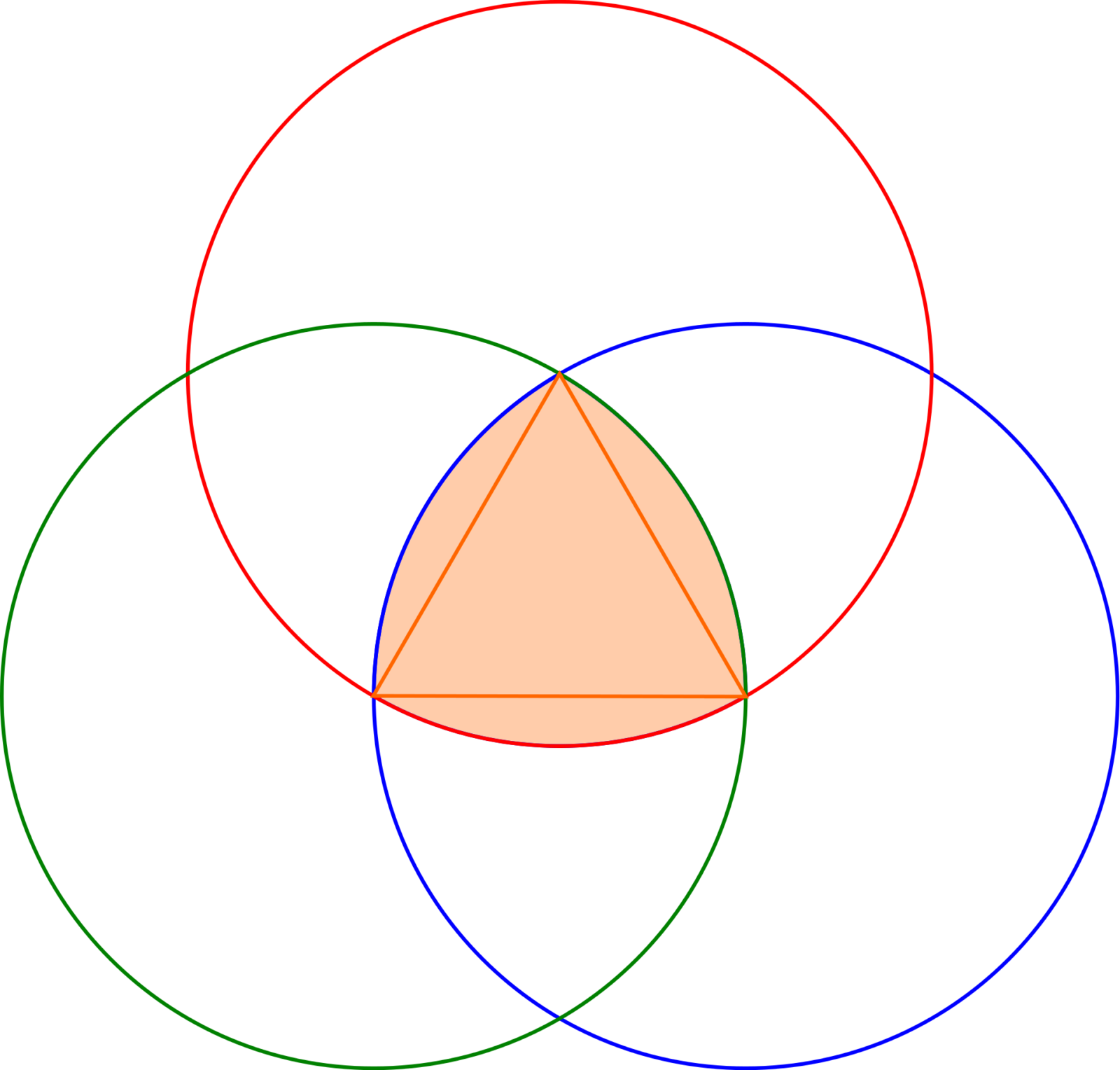 Trójkąt Reuleaux, nazwany na cześć inżyniera z XIX wieku, ale stosowany znacznie wcześniej przez naukowców takich jak Euler i Leonarda da Vinci, można utworzyć, konstruując trzy zazębiające się okręgi. Przestrzeń w ich środku to trójkąt Reuleaux.