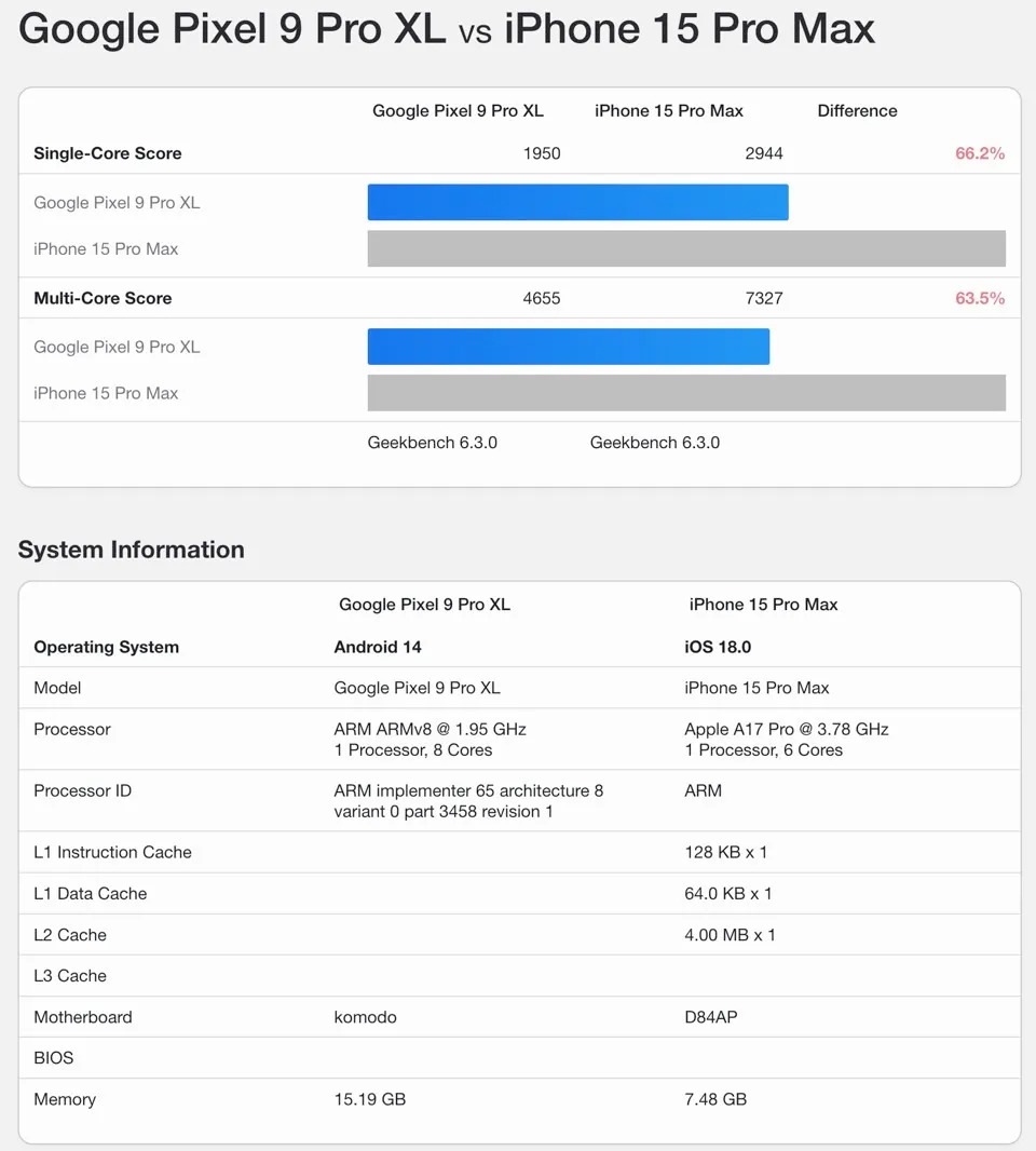 Przecieki z testu Geekbench wskazują niestety, że Google Tensor G4 wydajnością nie powali. Wyniki Pixela 9 Pro XL na poziomie 2/3 z pewnością nie zadowolą miłośników benchmarków, a mniejszy Pixel 9 jest jeszcze wolniejszy. Pojedynek na liczby z iPhone 16 Pro można z góry uznać za przegrany – układy Apple zawsze są bardzo wydajne.