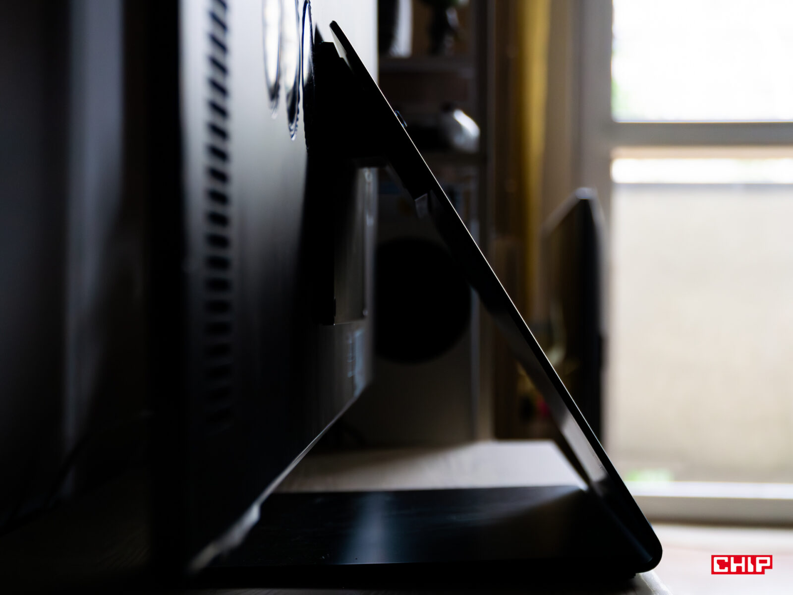 Ze względu na ograniczenia natury przestrzennej przypadł mi w udziale test telewizora Samsung S95D w wersji najmniejszej, czyli 55-calowej, która została dostarczona pod drzwi przez jedną osobę. O ile taka operacja przy odpowiednim zapasie krzepy jest możliwa, nie polecam wyjmowania i instalacji sprzętu w pojedynkę (z podstawką konstrukcja waży prawie 24 kg). O ile gabarytowo dałoby się jeszcze temat udźwignąć solo, o tyle panel telewizora jest dość cienki i lepiej uważać z jego przenoszeniem. Nie jest co prawda tak ultracienki jak testowany przez Arka niedawno Panasonic MZ2000, ale nadal imponuje smukłością. Wszystko za sprawą przeniesienia kluczowej elektroniki do osobnego pudełka – modułu One Connect Pro (Y24 4K), który można zamontować z tyłu na podstawce albo postawić gdzieś obok na stoliku telewizyjnym.