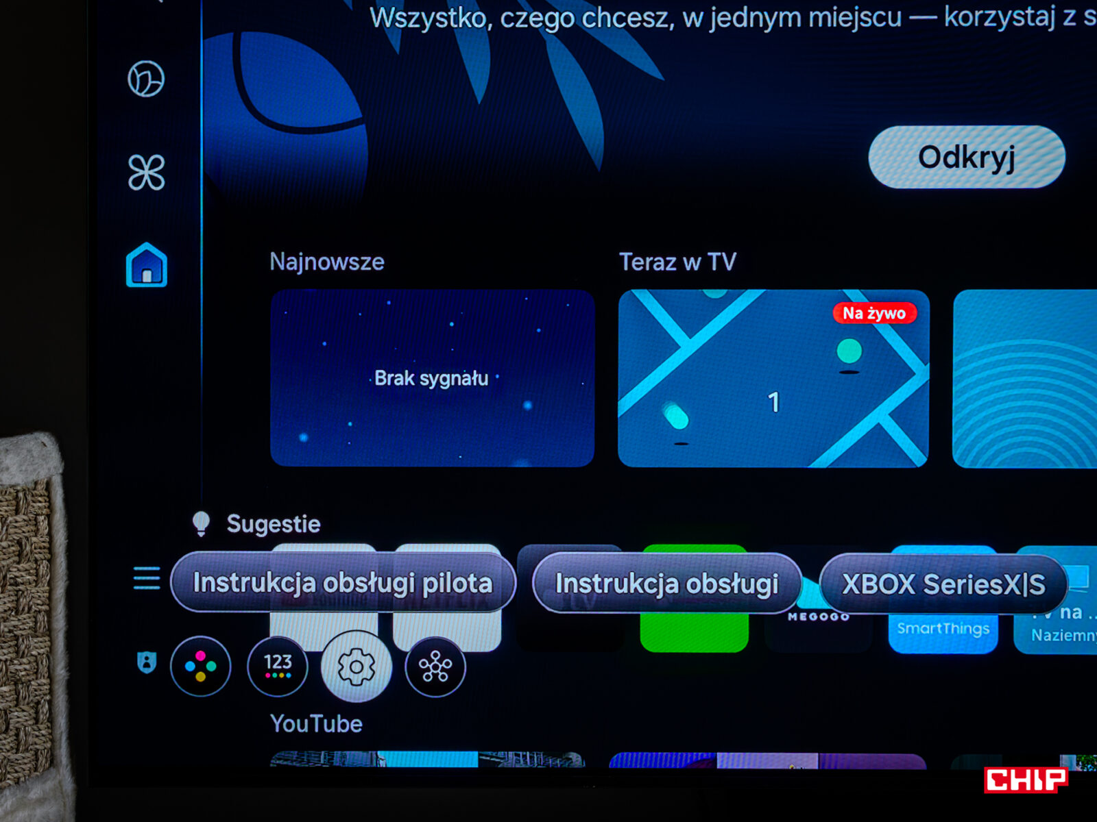 Do najważniejszych ustawień wideo, w tym trybów obrazu dostaniemy się z poziomu menu wywoływanego osobnym przyciskiem na pilocie (menu wskakuje na dolną krawędź ekranu). Jego zawartość można sobie dowolnie skonfigurować, wrzucając tam rzeczy, po które będziemy sięgać najczęściej. Reasumując, prostota i funkcjonalność, ale w porównaniu do innych platform Smart TV (np. webOS od LG) widać tu podejście bardziej konserwatywne. Jeśli więc szukacie bardziej nowatorskiego podejścia, polecałbym póki co tę drugą koreańską markę. To nie zarzut, po prostu obserwacja i jak dla mnie wszystko jest pod ręką, tak jak być powinno, ale mam mam już swoje lata, więc sami rozumiecie. To może jeszcze krótko o samym pilocie zdalnego sterowania.
