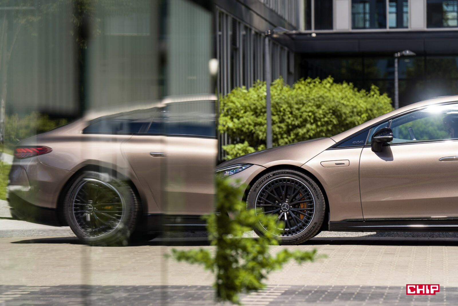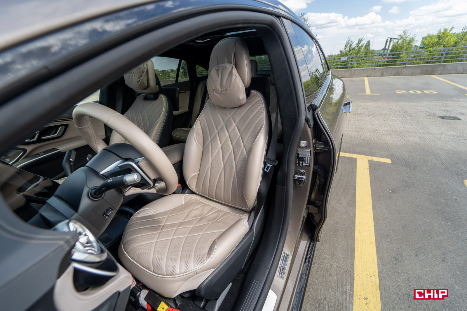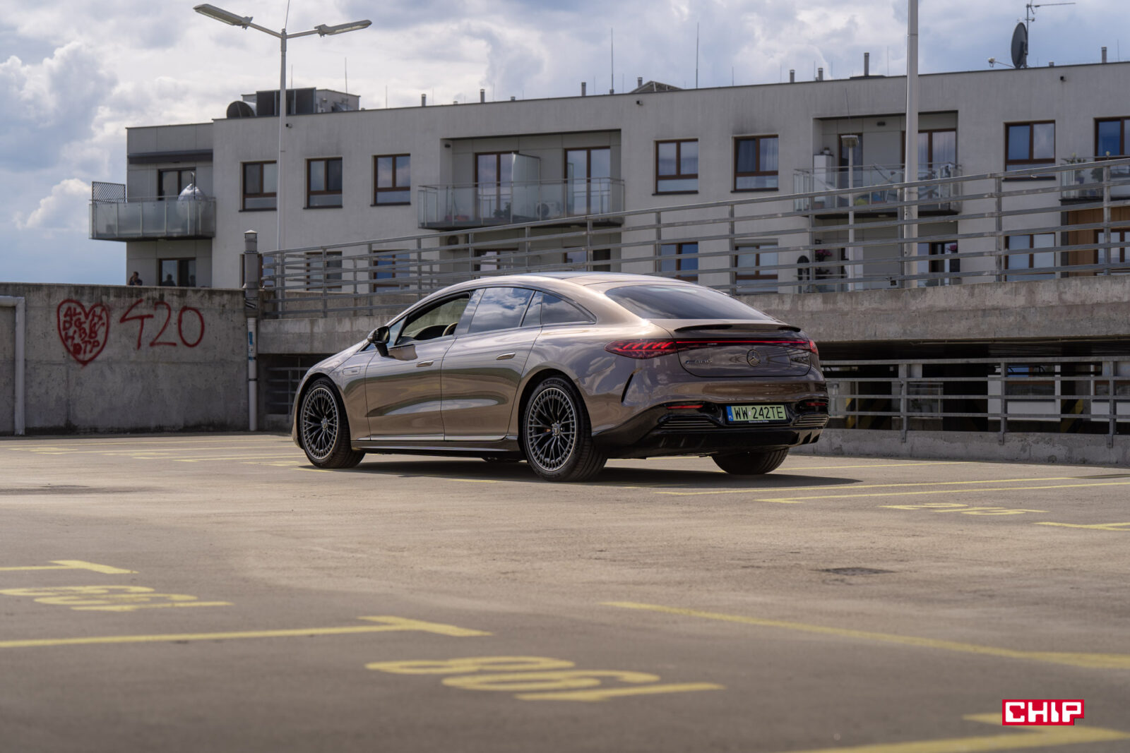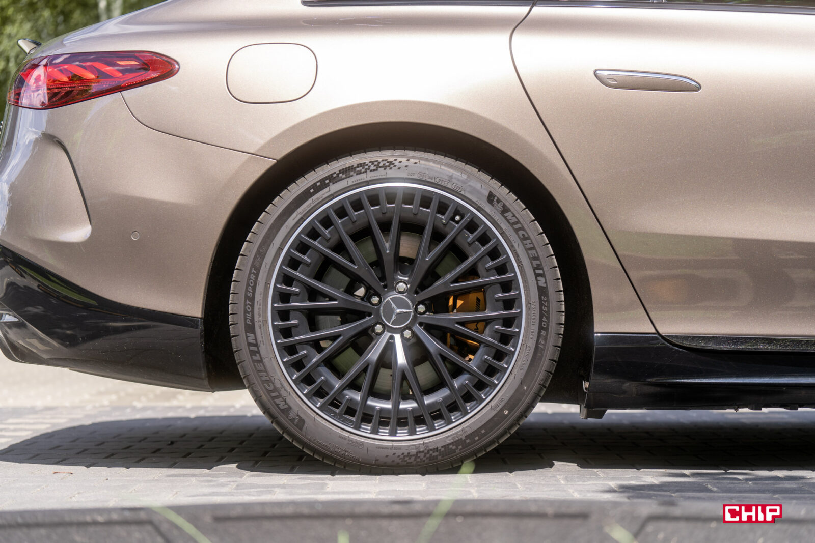 Szczególnie w wariancie testowym, bo nie pierwszy raz auto z parku prasowego Mercedesa jest nietypowo skonfigurowane. Piaskowy lakier nijak kojarzy się z bardzo szybkim AMG. Podobnie jak niedorzecznie wielkie, zabudowane felgi, które widziałbym w leniwie toczącym się Maybachu, a nie aucie sportowym. Wszystko to potęguje efekt wow!, jaki robi EQS 53.