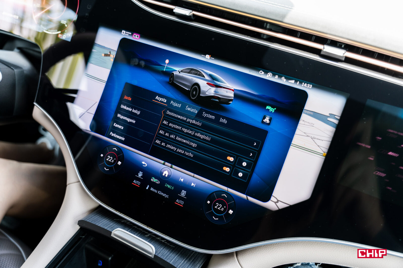 Oczywiście masa rzeczy działa tutaj perfekcyjnie i jest szalenie przydatna. Jak rozbudowany do granic możliwości system kamer 360, nawigacja z rozszerzoną rzeczywistością czy bardzo pomocy podgląd z kamery na sygnalizację świetlną, kiedy stoimy na czerwonym.