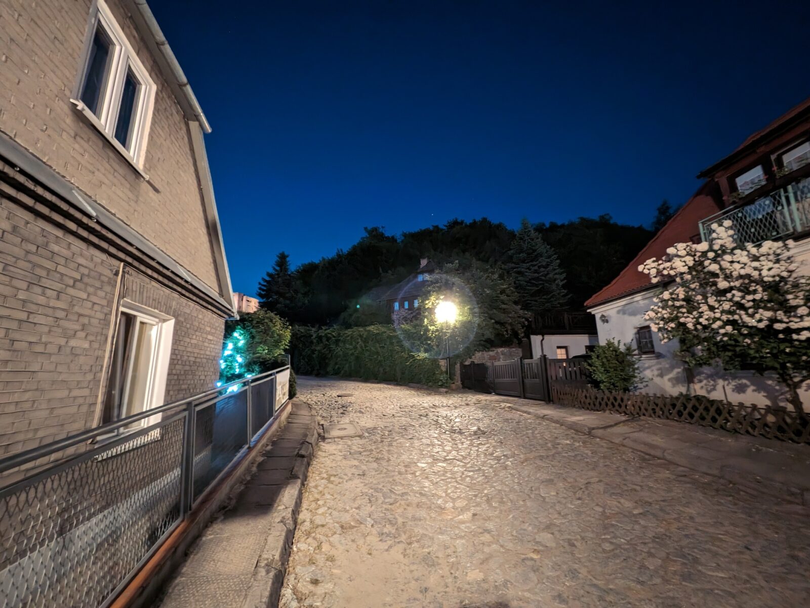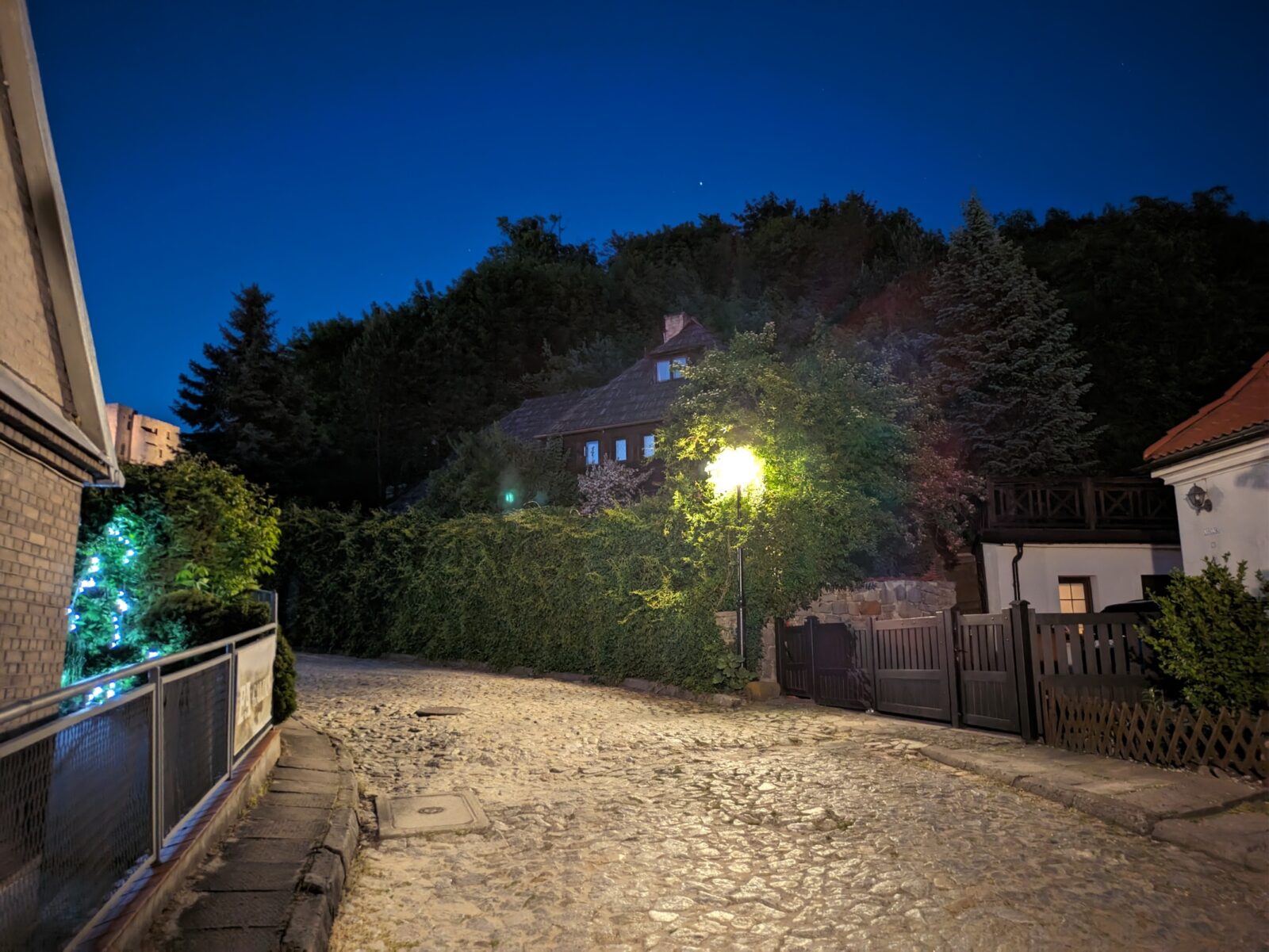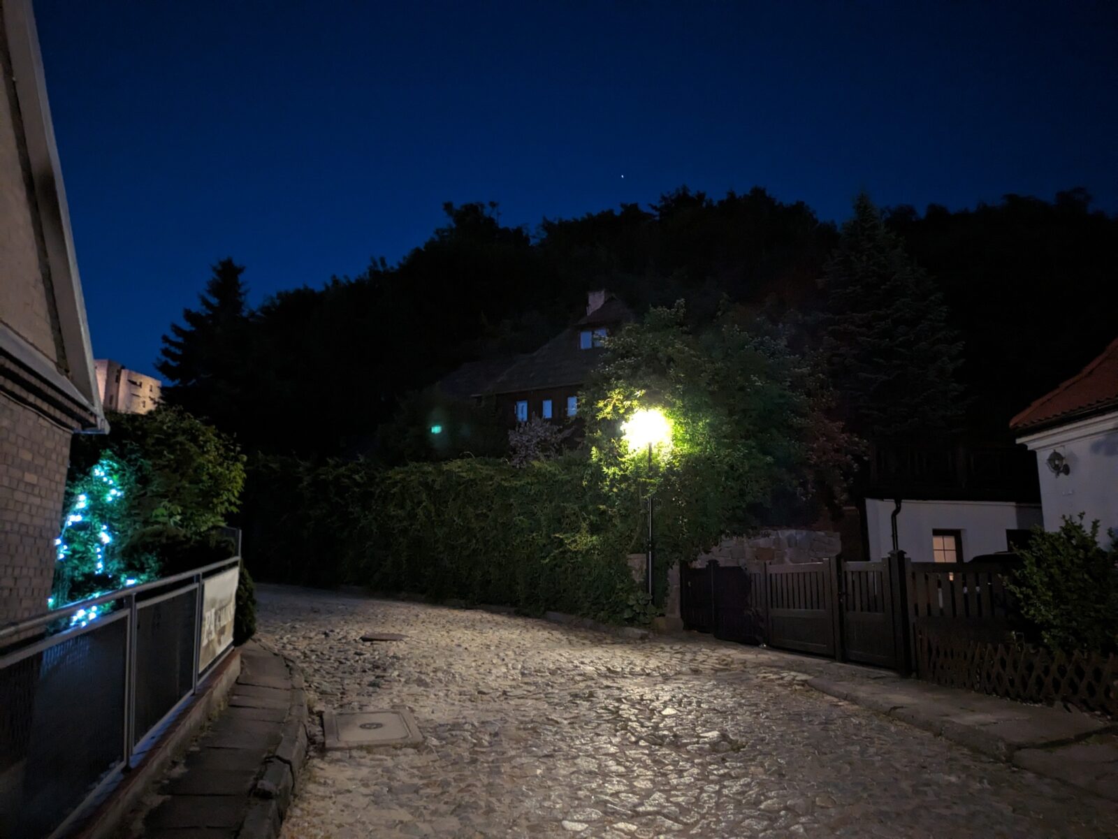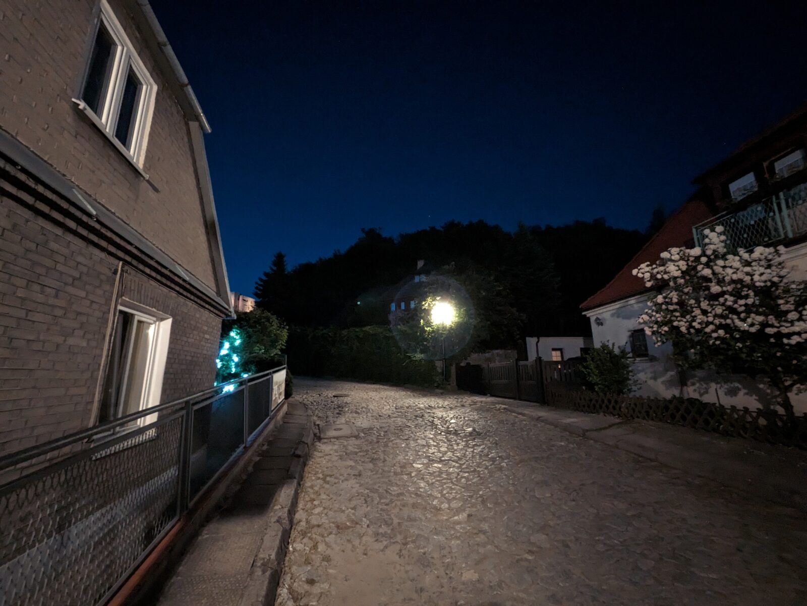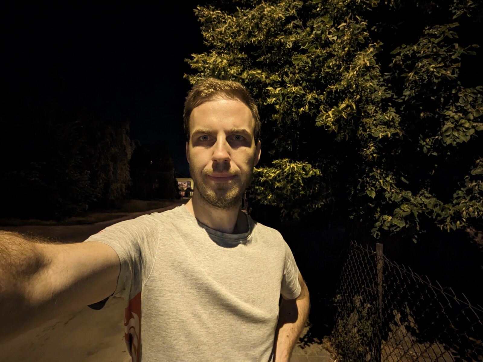 W przypadku zdjęć nocnych, jest już nieco gorzej, co nie znaczy że źle – co to to nie. Szczegółów jest mniej, ale szum jest trzymany pod kontrolą i praktycznie nie widać go na zdjęciach. Lekko rozmazane ujęcia zdarzają się praktycznie tylko wtedy, gdy korzystamy z szerokiego kąta, bowiem nad aparatem głównym czuwa optyczna stabilizacja obrazu. Warto też zauważyć, że jeśli robimy zdjęcia w (prawie) zupełnej ciemności, tryb nocny robi gigantyczną różnice. Fajnie też, że ujęcia wykonane w trybie nocnym są oznaczone w aplikacji Zdjęcia ikoną księżyca.