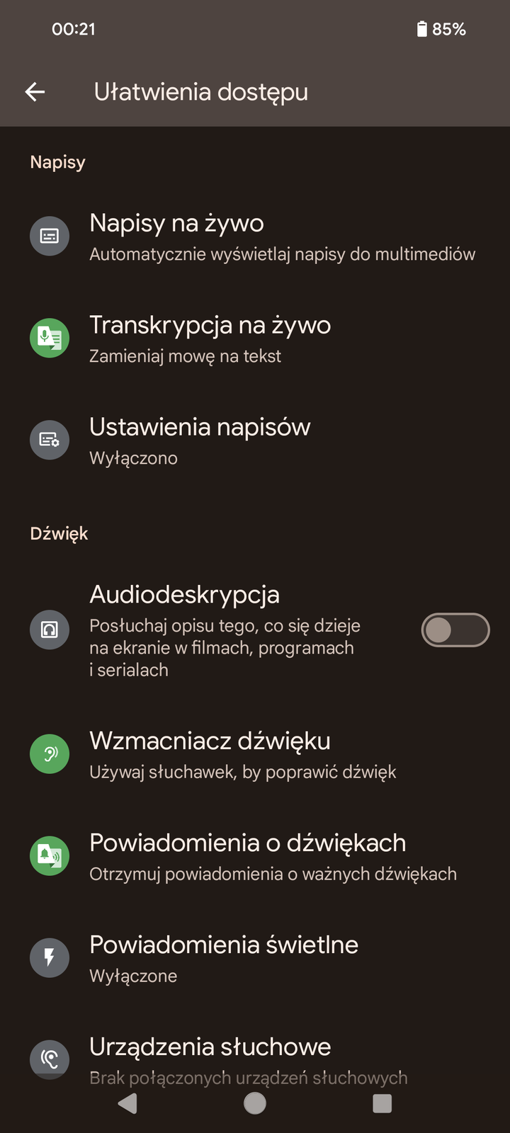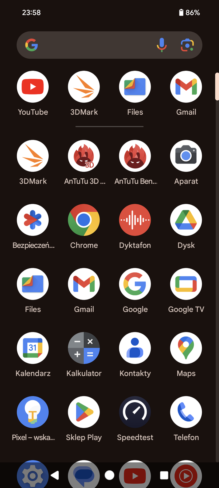 System w smartfonach Pixel jest często nazywany czystym androidem, ale nie jest to do końca prawda – w oprogramowaniu znalazły się funkcje, których albo próżno szukać w innych smartfonach z Androidem, albo są realizowane innymi metodami. Część z nich to AI wspomagająca aparaty fotograficzne i funkcje edycyjne „magicznego edytora”, wspomagane sztuczną inteligencją, ale jest tego więcej: tłumaczenia i transkrypcje na żywo, wyszukiwanie w internecie na podstawie zaznaczenia wprost z ekranu, a także różnego typu automatyzacje w trakcie rozmowy, niestety co do zasady niedostępne w języku polskim. Ponieważ jednak model AI Gemini od Google’a otrzymał niedawno oficjalnie wsparcie dla języka polskiego, możliwie, że użytkownicy Pixeli także doczekają się niedostępnych w tej chwili funkcji. Jeśli nie odpowiadają nam dostępne tapety, można skorzystać z opartego o AI wbudowanego generatora. Ikony pulpitu z kolei można dopasować do motywu kolorystycznego tapety – funkcja ta jest w wersji beta i niestety nie działa, jak należy, zaskakująco wiele bowiem aplikacji ma pozostawione domyślne, kolorowe. Podobny problem występował w Nothing Phone (2a), lecz tam pomogło doinstalowanie pakietu z ikonami, Pixel 8 jednak takiej możliwości nie ma i ostatecznie uznałem, że w tej formie działanie funkcji nie ma większego sensu.
