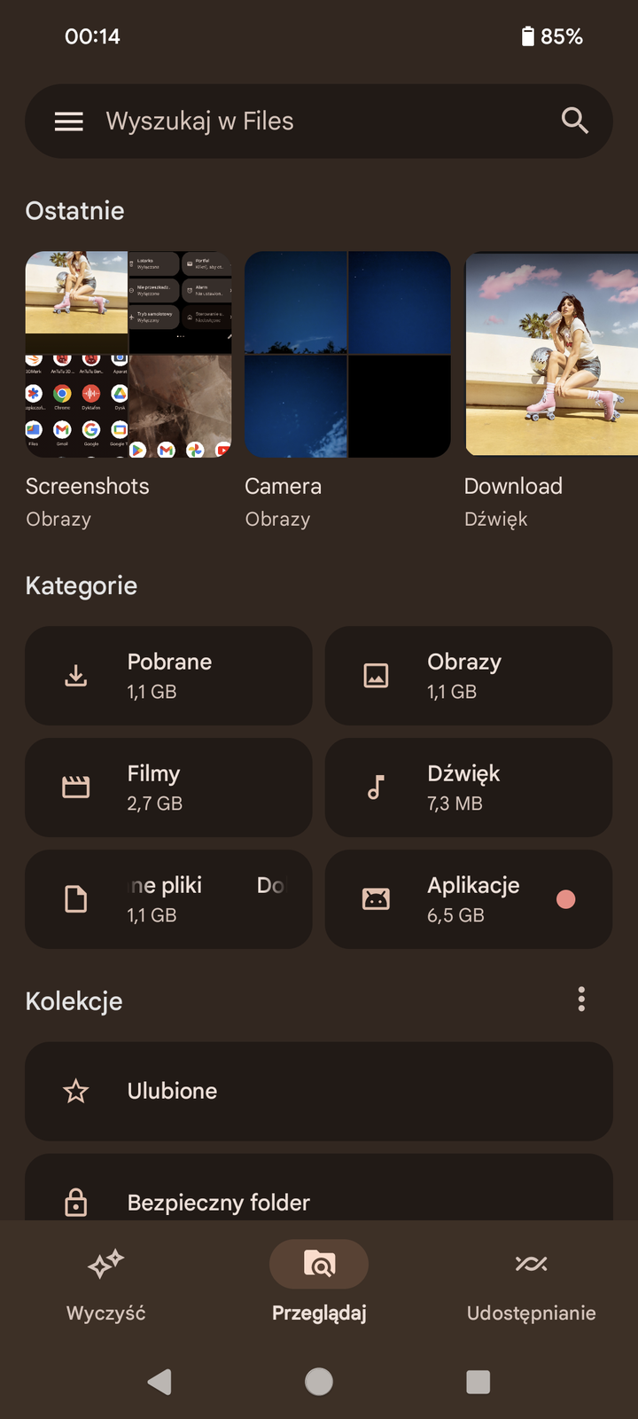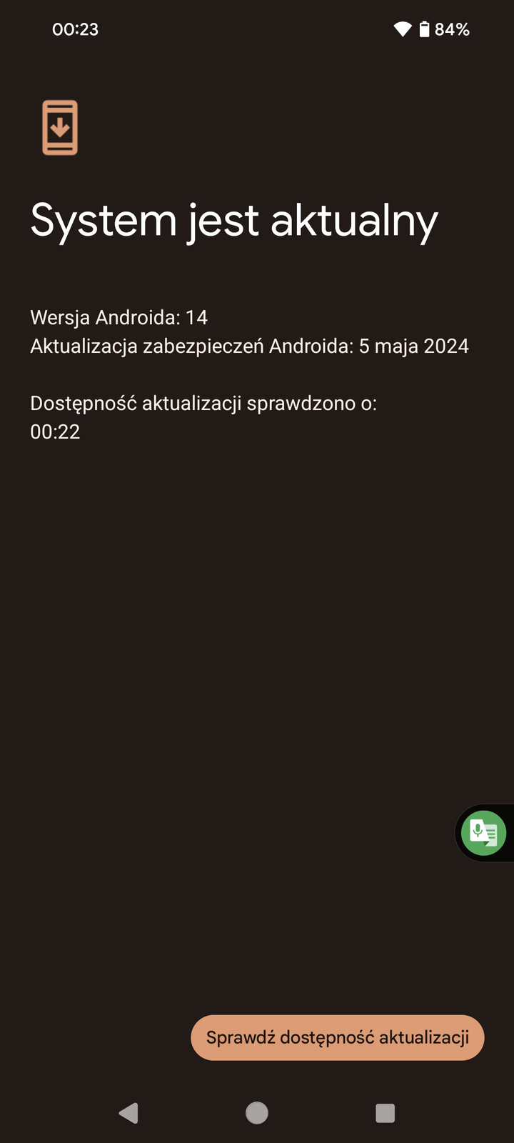 Czego oczekujemy kupując Pixele od Google? Czystego Androida i długiego wsparcia aktualizacjami. No i praktycznie to dostajemy – system w wersji 14, z gwarantowanym 7 letnim wsparciem oraz funkcjami i dodatkami związanymi głównie z AI. Bez żadnych aplikacji firm zewnętrznych i bez żadnych nakładek. Super. System działa płynnie i stabilnie – nie odnotowałem żadnych problemów, a poprawki bezpieczeństwa są oczywiście najświeższe z możliwych (na dzień pisania tego tekstu był to 5 maja 2024 r.).