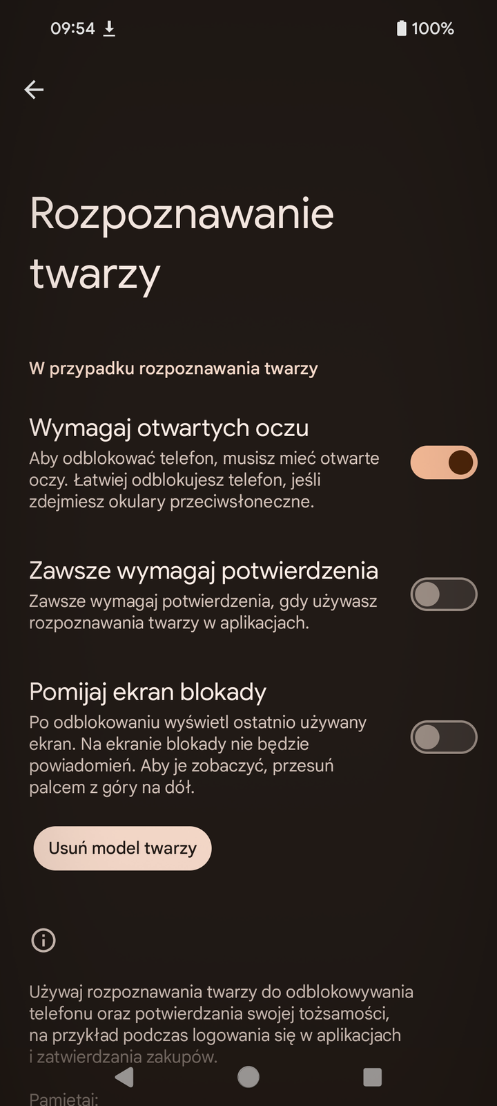 Jeśli chodzi o zabezpieczenia, to oczywiście poza standardowym hasłem lub symbolem, możemy zabezpieczyć dostęp do smatfona również odciskiem palca lub skanem twarzy Czytnik linii papilarnych znajduje się pod ekranem, nieco wyżej, niż w innych smartfonach, co świetnie wpływa na ergonomię użytkowania – brawo. Niestety, czytnik nie jest cały czas aktywny – żeby go aktywować musimy najpierw albo wybudzić ekran dwu-klikiem, albo wziąć go w dłoń. Jak już się jednak uaktywni, to działa bardzo szybko i celnie. Podobnie sprawa wygląda ze skanerem twarzy, z tym, że niestety ma on spore problemy, gdy musi odczytywać twarz pod światło. I to nie tylko na dworze – przy oknie w biurze też i to nawet w pochmurniejszy dzień.