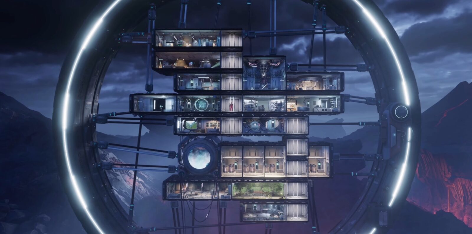 W bazie zabawy również nie brakuje. Siatka rozplanowana na bazie koła pozwala budować szereg różnych stacji poza windami oraz magazynami, ale najlepsze w tym jest to, że przełączanie się między trybem budowania a postacią zachodzi bez żadnego ekranu ładowania. Możemy więc szybko testować konkretne ustawienie modułów, przejść się między nimi, a przy okazji np. pogadać ze swoim Altersem, poczytać dziennik czy wyprodukować coś w jednej ze stacji. W tej kwestii jedyne, czego nie za bardzo kupuję, to przestrzeń magazynowa, która wydaje się aktualnie niepotrzebnym specjalnie zapychaczem na gridzie. Co innego, gdyby gra wymuszała od nas przemieszczanie surowców z magazynów do stacji roboczych, czy ręcznego zaopatrywania np. kuchni w jedzenie. Nie wydaje się to jednak czymś, co The Alters specjalnie by wzbogaciło, a wręcz przeciwnie.