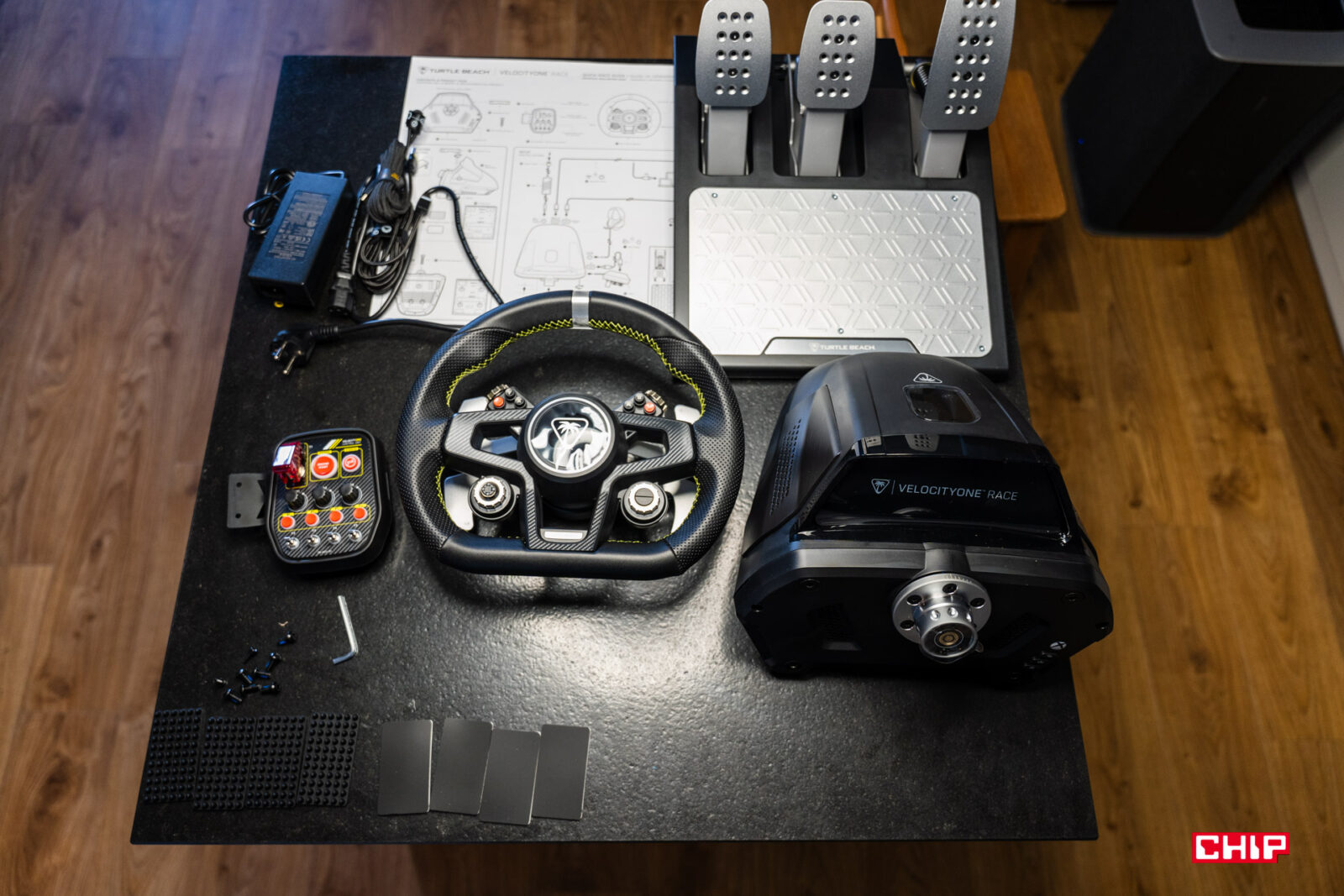 Wieloczęściowy zestaw zapakowany w ogromne, ciężkie pudełko powodował, że do rozpakowania Turtle Beach VelocityOne Race podchodziłem jak to iście bojowego zadania. Bardzo pozytywnie się zaskoczyłem, bo przykręcanie śrubek okazało się najbardziej skomplikowaną czynnością.