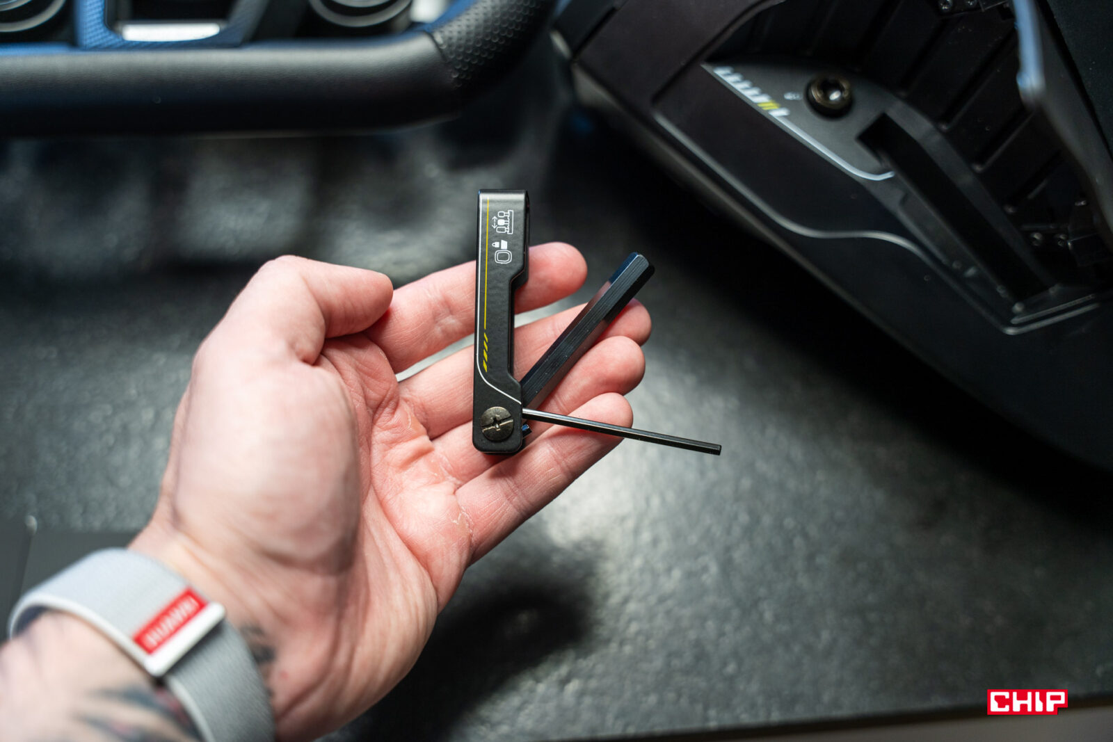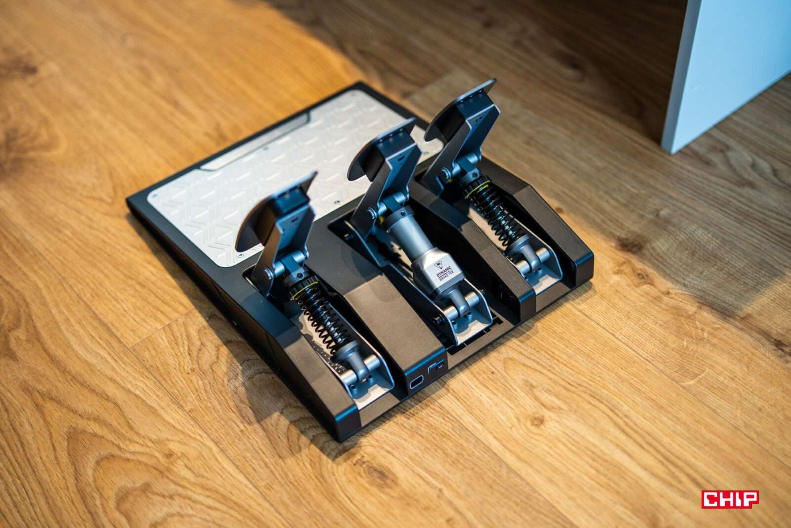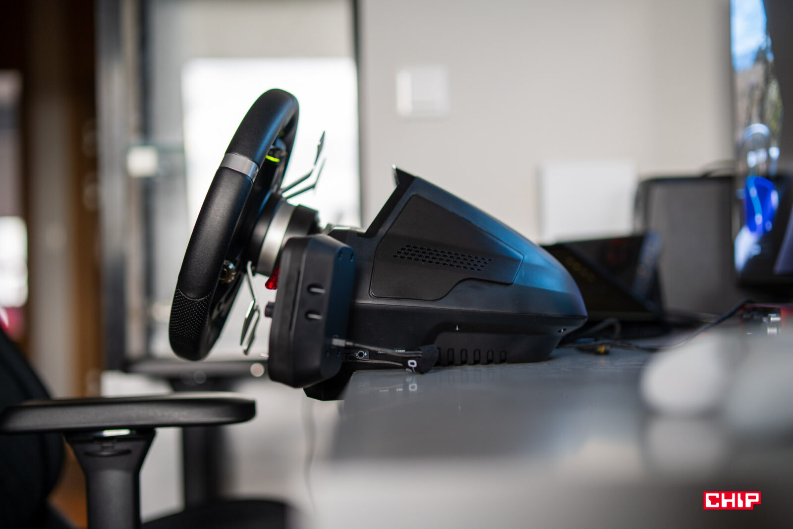 Co też jest ważne, zestaw nie tylko łatwo się składa, ale też można go szybko rozebrać, kiedy potrzebujemy go usunąć z biurka. Szybko powinno się też dać wymienić samą kierownicę na inną, na co pozwala dostępny tu zatrzask. Tyle tylko, że takowych kompatybilnych… póki co nie ma.