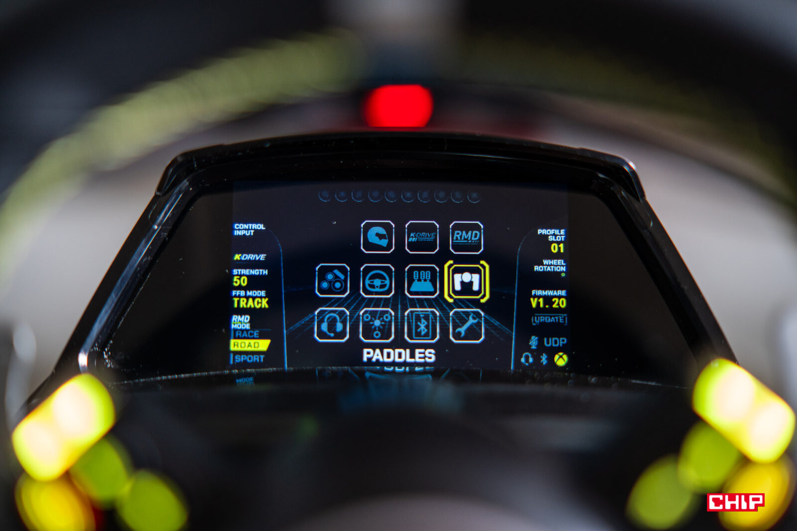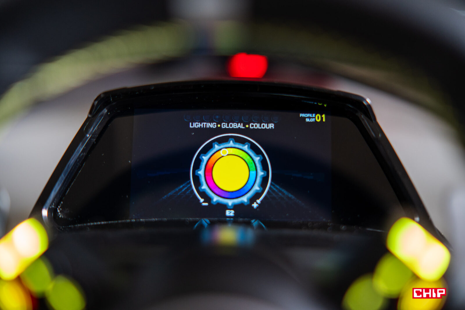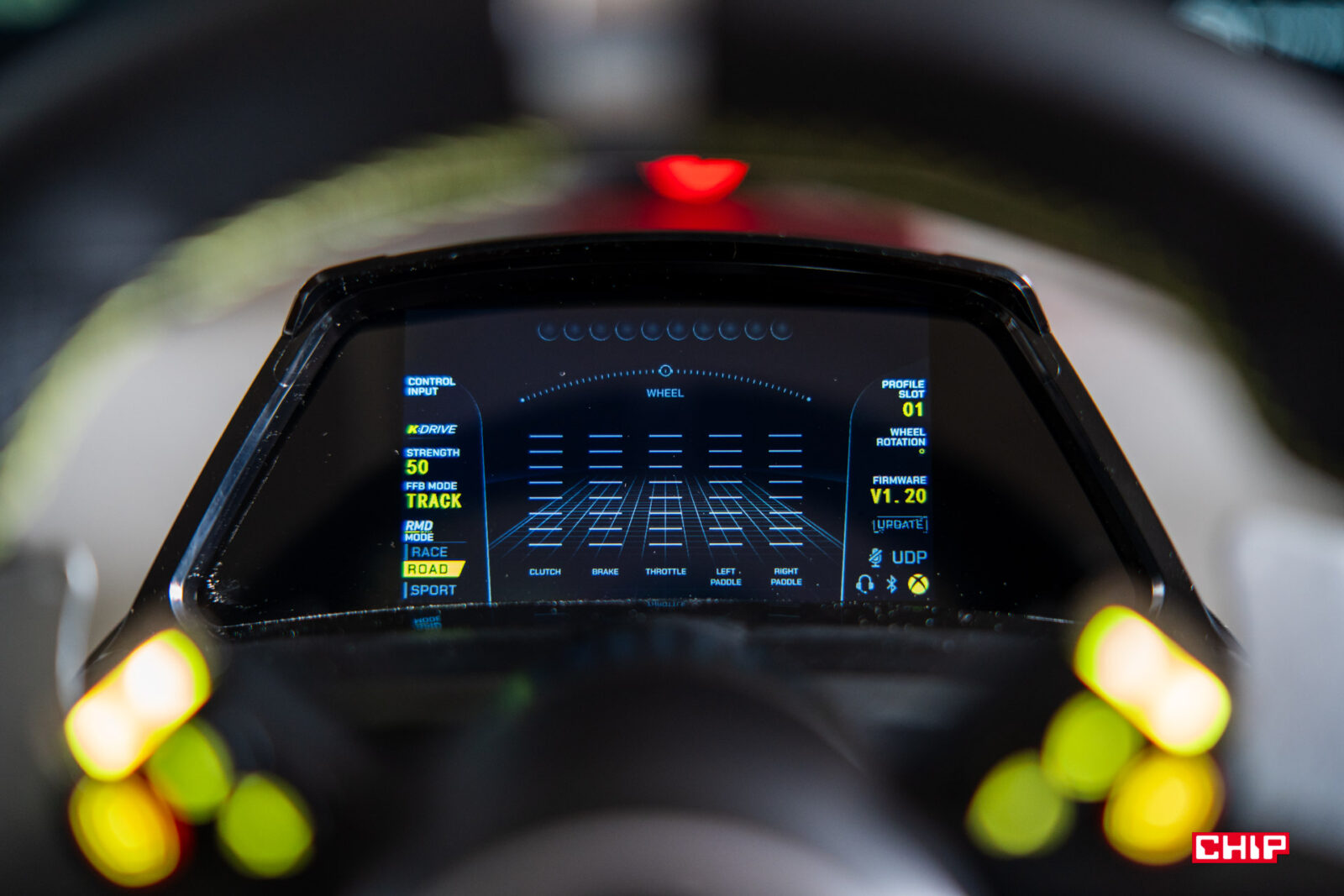 Ekran służy też do wyświetlania telemetrii z wybranych gier, co na ogół działa poprawnie. Możemy wtedy widzieć na nim np. prędkościomierz czy obroty silnika. Funkcja działa jednak tylko na grach PC, nie jest dostępna na Xboxie.