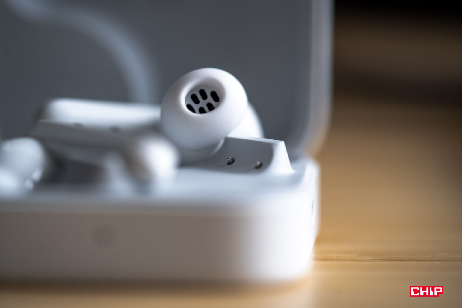 Same etui jest plastikowe, również matowe jak obudowa słuchawek. Nie jest jakoś wybitnie solidne i raczej nie próbowałbym go upuścić na beton, ale zdecydowanie nie ma tu tragedii.