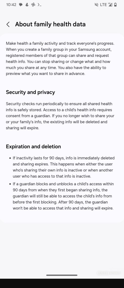 Jak widać, aplikacja Zdrowie ma możliwość monitorowanie danych otrzymywanych przez Galaxy Watch należące do członków rodziny. Najpierw konieczne będzie zatwierdzenie takiego udostępniania, a odpowiednia sekcja zostanie wbudowana w kontrolę bezpieczeństwa i prywatność, co powoli wszystkim osobom na zaprzestanie udostępniania lub zmianę ustawień dotyczących tego, jakie dane trafiają do innych członków rodziny – będzie można to zrobić w każdej chwili. Dostęp do informacji o stanie zdrowia dziecka będzie wymagał zgody opiekuna. Udostępnione dane są również automatycznie usuwane, a udostępnianie jest anulowane, jeśli nastąpi dłuższy okres braku aktywności.