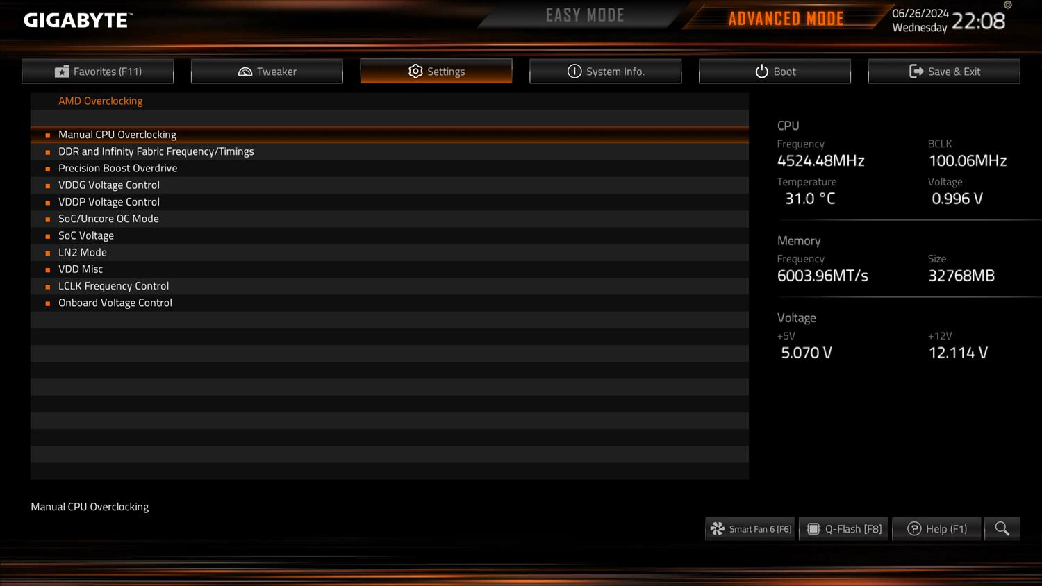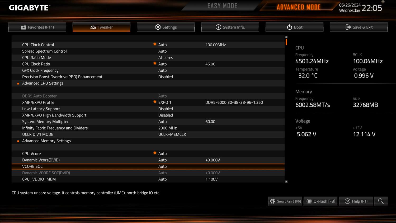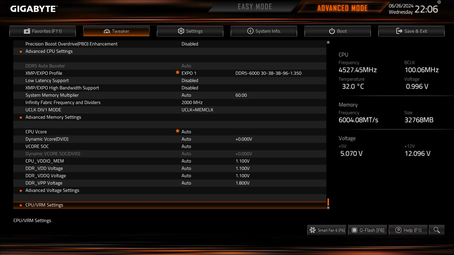 Testy wykonałem przy domyślnych ustawieniach BIOSu. Włączyłem tylko profil EXPO pamięci, który zadziałał bez problemów.