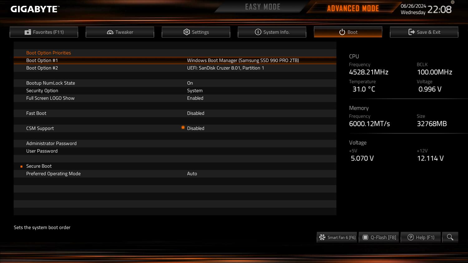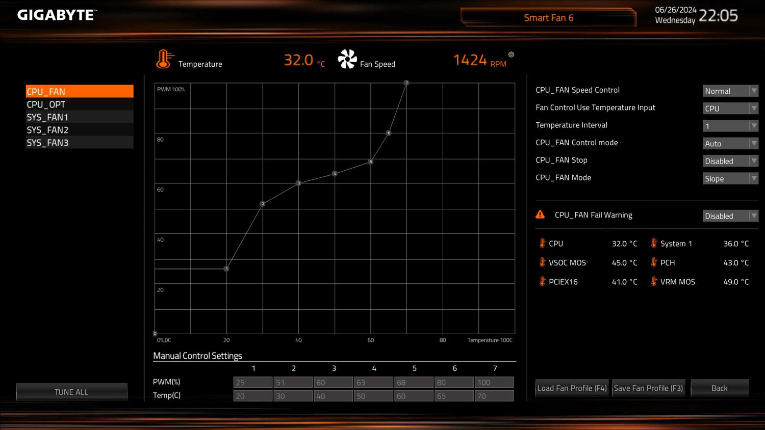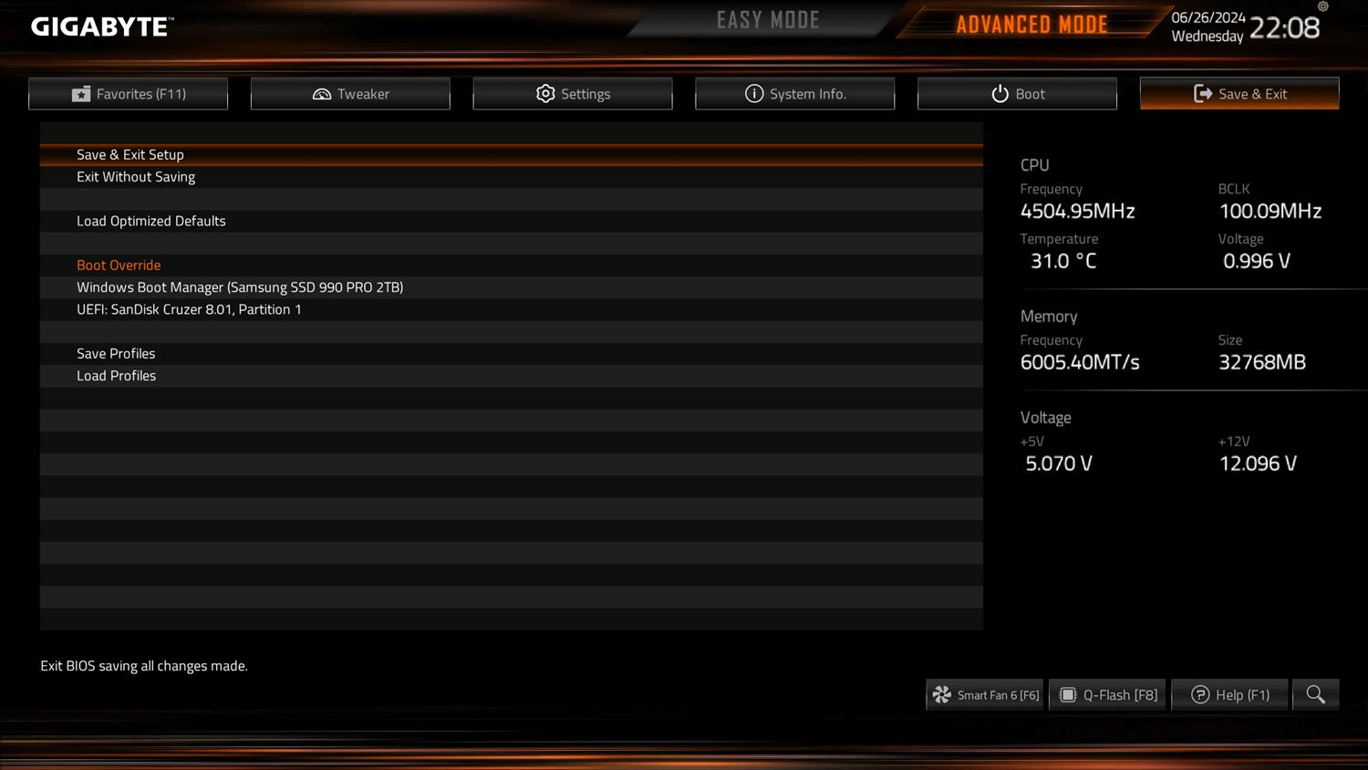 BIOS jest standardowy dla Gigabyte. Łatwo więc ustawimy profil EXPO czy XMP pamięci. Ten pierwszy zadziałał w moim przypadku bez problemów. Mamy też domyślnie włączony ReBar, czy szybki dostęp do wielu funkcji. W trybie zaawansowanym możecie bez problemów podkręcić pamięci czy procesor. Jest też sporo opcji dotyczących ustawień całej platformy. Fajnie działa też smart fan 6, w którym możecie zarządzać wentylatorami. Ustawienia są dobrze porozkładane i nie powinno być problemów ze znalezieniem interesującej funkcji. Pod tym względem jest dobrze.