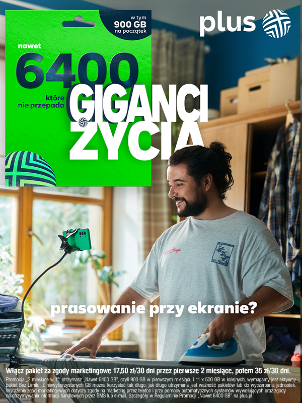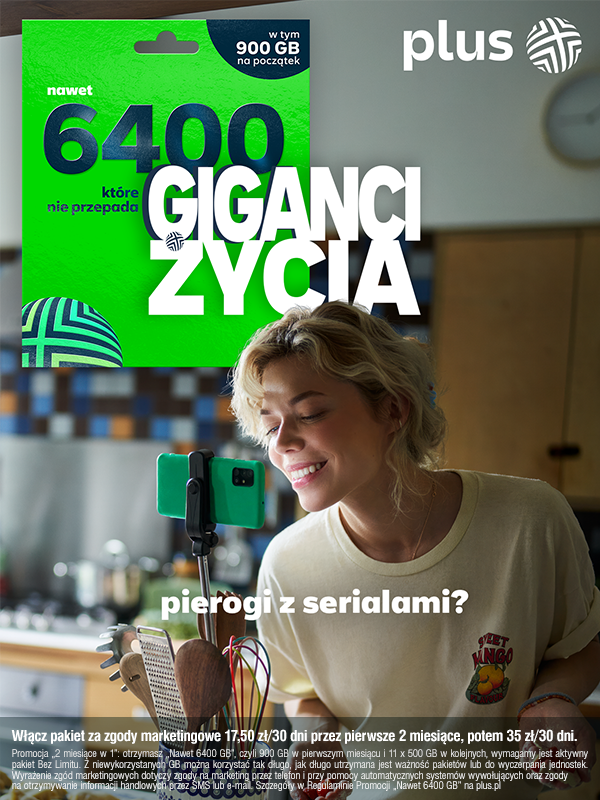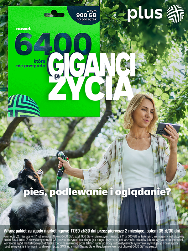 Lato w pełni, a to oznacza wakacje, czyli czas, kiedy po prostu możemy być sobą. Nikt nam nie mówi, jak powinniśmy spędzić wolne od szkoły czy pracy. Można nadrobić zaległe seriale, przesiedzieć cały dzień na działce, wybrać się na szybki wypad nad morze, a potem rozesłać zdjęcia całej rodzinie. Tyle pomysłów, ile ludzi. Najlepsze w tym wszystkim jest jednak to, że wystarczy wsunąć rękę do kieszeni i wyłowić z niej telefon, by wszystko to było możliwe. A właściwie… potrzebne jest nam jeszcze coś – internet. Najlepiej taki, który nie będzie stawiał nam ograniczeń. Tutaj wkracza Plus na Kartę, podrzucając nam 900 GB na start, a potem przez kolejne 11 miesięcy po 500 GB, oddając łącznie w nasze ręce 6400 GB danych do wykorzystania. Zostanie GIGAntem Życia nigdy nie było takie łatwe.