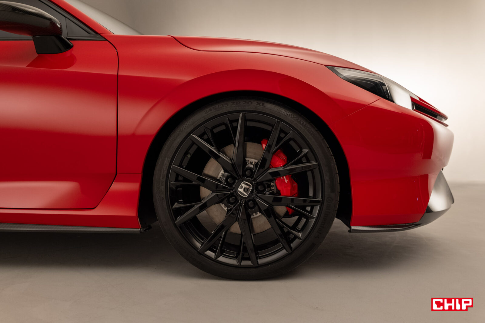 Każda osoba z działającą parą oczu zauważy, że wykorzystanie nazwy Prelude jest raczej zabiegiem marketingowym, bo nawiązań do poprzedników nie ma tu zbyt wiele, przynajmniej w sferze wizualnej. Być może wnętrze i duch wrażeń z jazdy zostaną przeniesione z odpowiednią troską, ale tego nie sprawdzimy przynajmniej przez najbliższy czas. Widzimy jednak to, co najistotniejsze – karoserię, która przy niesamowitej płynności kształtów ma też kilka ostrych krawędzi. Za felgami kryją się za to hamulce z krwistoczerwonymi nakładkami. Ukryte w bryle klamki to spodziewany zabieg, podobnie jak lusterka pokryte karbonową folią.