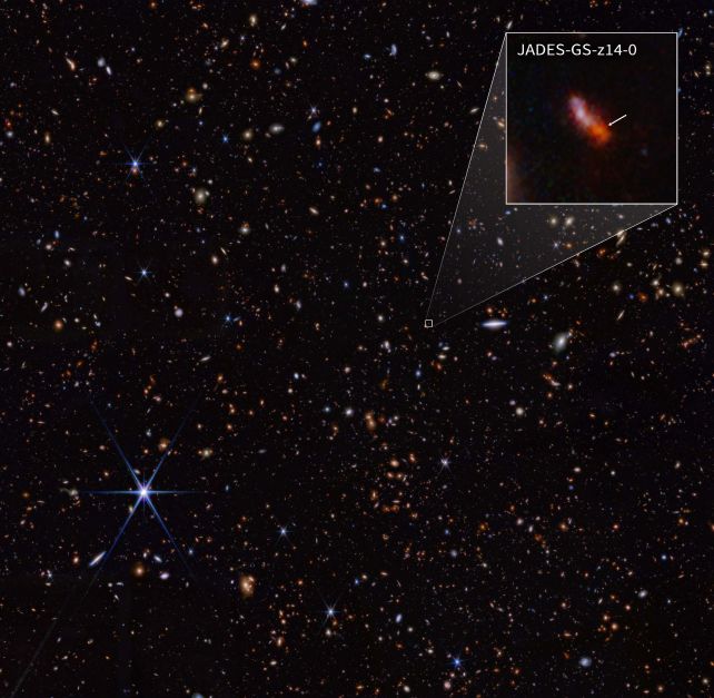 Galaktyka JADES-GS-z14-0 istniała już mniej niż 300 milionów lat po Wielkim Wybuchu