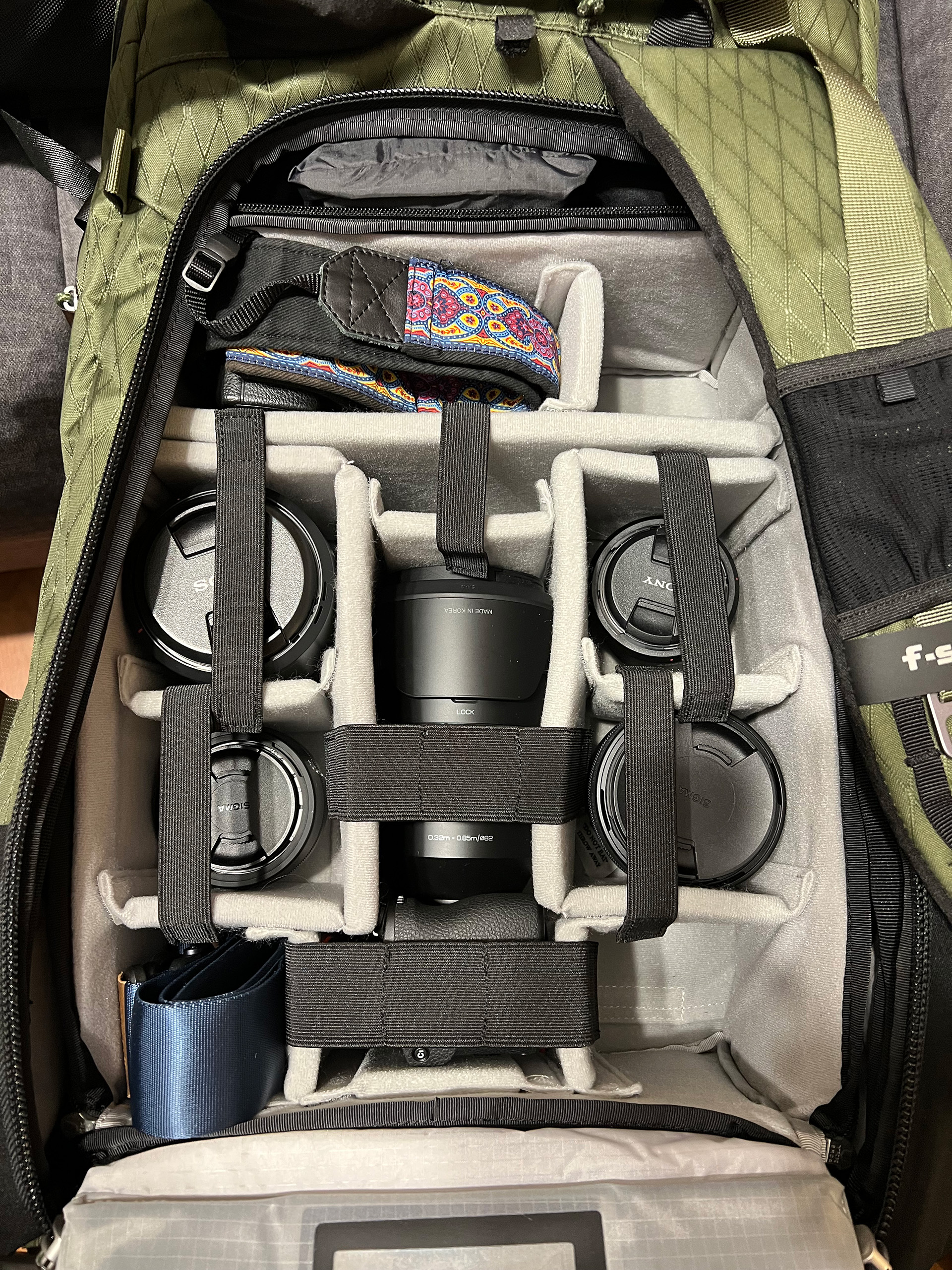 Zatem F-Stop Tilopa. Plecak w zestawie miał odpowiednio duży wkład, zamówienie i dostawa ogarnięte zostały przez K-Consult w mgnieniu oka (dzięki, Łukasz!) i mogłem zacząć się przepakowywać. Tilopa to świetny plecak, zapewne przy okazji doczeka się recenzji, ale ma pewną cechę charakterystyczną – odłączane paski do akcesoriów. W zestawie są dwa, co rozwiązuje problem zamocowania statywu, ale rychło okazało się, że to za mało. Skoro sklepy mają plecaki w ofercie, to nabycie pasków nie będzie problemem.
