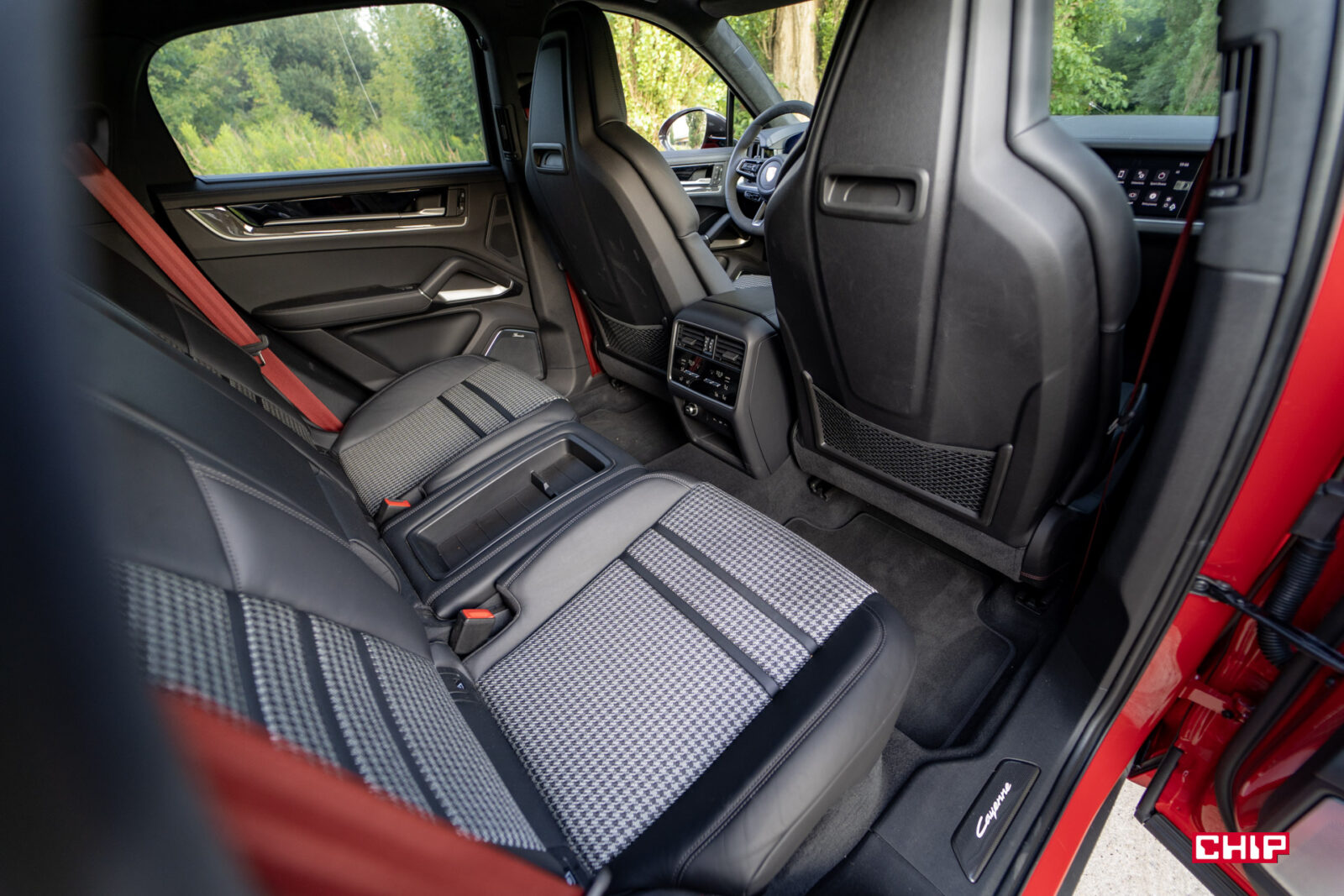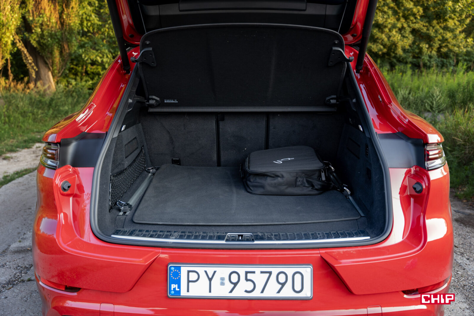 Bagażnik jest okrutnie ciasny. Podłoga jest bardzo wysoka, pod nią mamy dedykowane miejsce na zwinięcie kabla do ładowania, ogromny wzmacniacz nagłośnienia oraz baterie. Jak bardzo jest tu ciasno? Do przewiezienia dwóch standardowych wentylatorów podłogowych musiałem złożyć tylną kanapę. A kolejnego dnia, po złożeniu i próbie zapakowania hulajnogi elektrycznej okazało się, że znowu muszę zrobić to samo. Idę o zakład, że rzeczy z zapakowanego po brzegi bagażnika Mercedesa CLE, którym pojechaliśmy niedawno na urlop, nie weszłyby do bagażnika Cayenne.