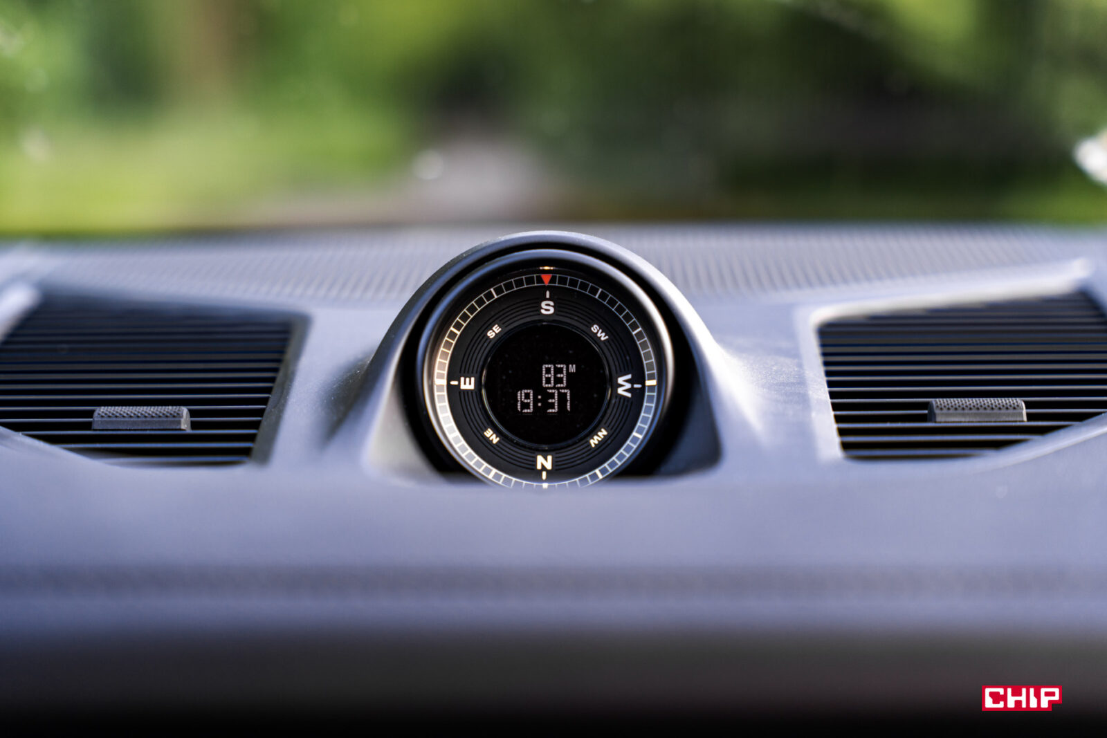 Za to nie straszy piękny zegar na szczycie deski rozdzielczej, który opcjonalnie może być otoczony w pełni funkcjonalnym kompasem. Po co? Bo można!