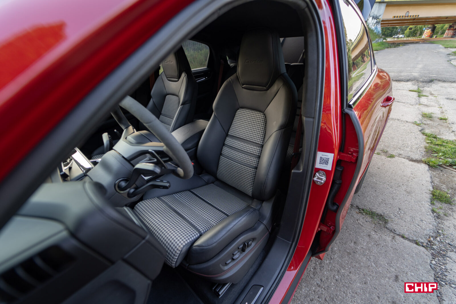 Nasz prawie 5-metrowy i szeroki na ponad 2 metry Porsche Cayenne Turbo E-Hybrid jest autem 4-osobowym. Co zapewne wiele osób może zaskoczyć. Wnętrze jest przeogromne, co jest zasługą nie tylko rozmiarów auta, ale też przednich foteli.