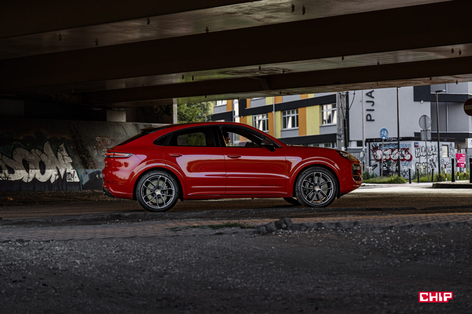Z tyłu i z boku nowy Cayenne w coupe wygląda bardzo zgrabnie. Widać tu dużo podobieństw do Audi Q8. Wszystko jest tu spójne, bardzo zbite, masywne, ale jednocześnie szalenie proporcjonalne. Nawet te 22-calowe felgi z absurdalnie szerokimi oponami, z odpowiedniej odległości, nie wydają się przesadnie duże.