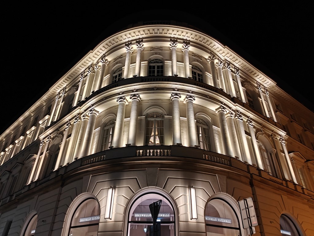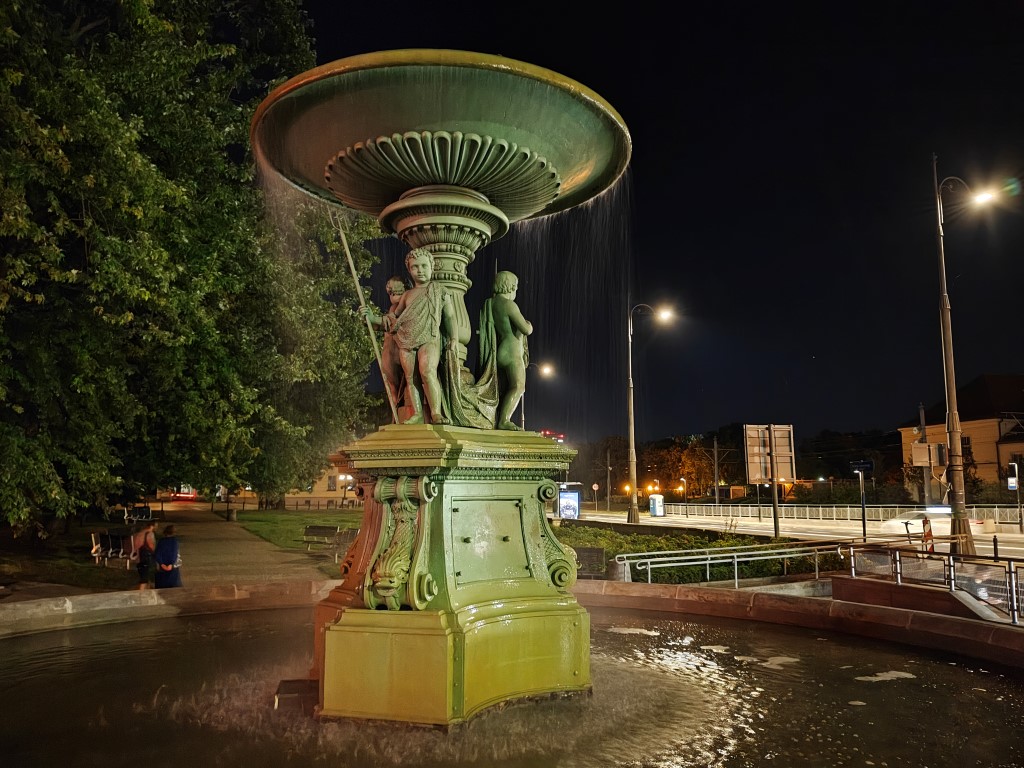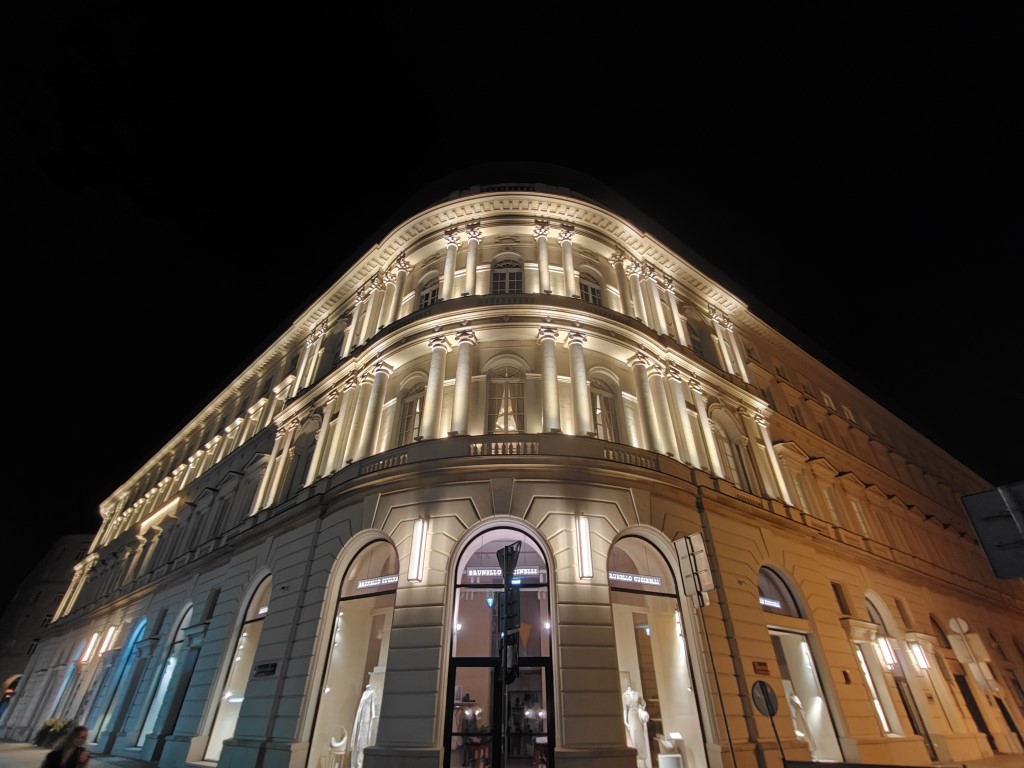 Nocą smartfon i tak “zachęci” was do skorzystania z dłuższego naświetlania, bo albo sam zrobi to w automacie, ale włączy tryb nocny z opcją odkliknięcia małego przełącznika w rogu kadru. Różnicę widać tylko przy ultraszerokim kadrze, bo ten bez trybu nocnego, nawet z długim naświetleniem, wygląda gorzej. Sam tryb nocny poprawia zdjęcia w dobry sposób – zmniejsza rozbłyski świetlne, dodaje szczegółów obiektom i rozjaśnia kadr bez prześwietlania nieba.