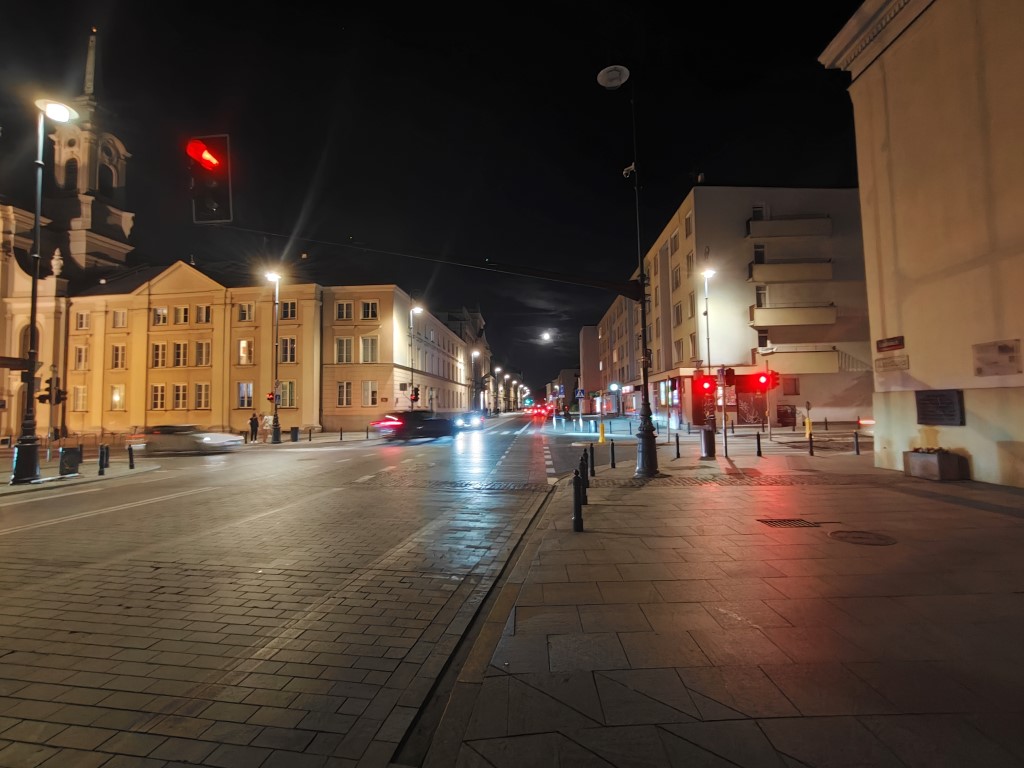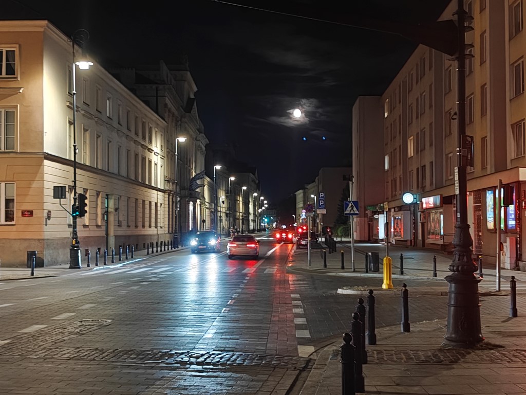 Niestety, ale smartfon nie radzi sobie idealnie z jasnymi źródłami światła i te potrafią zapaskudzić kadr. Wtedy też wychodzą na wierzch szumy, które są zaakcentowane mocniej niż zazwyczaj. Tryb nocny ratuje wygląd elementów mocniej doświetlonych, jak budynki, ale nie wyczaruje na nowo kadru – w końcu to średnia półka. Ostatecznie szczegółowość jest dobra, a stabilizacja pomaga. Z kolei zdjęcia z ultraszerokiego kąta wyglądają na rozmyte nawet, jeśli wasza dłoń trzyma smartfon stabilnie.