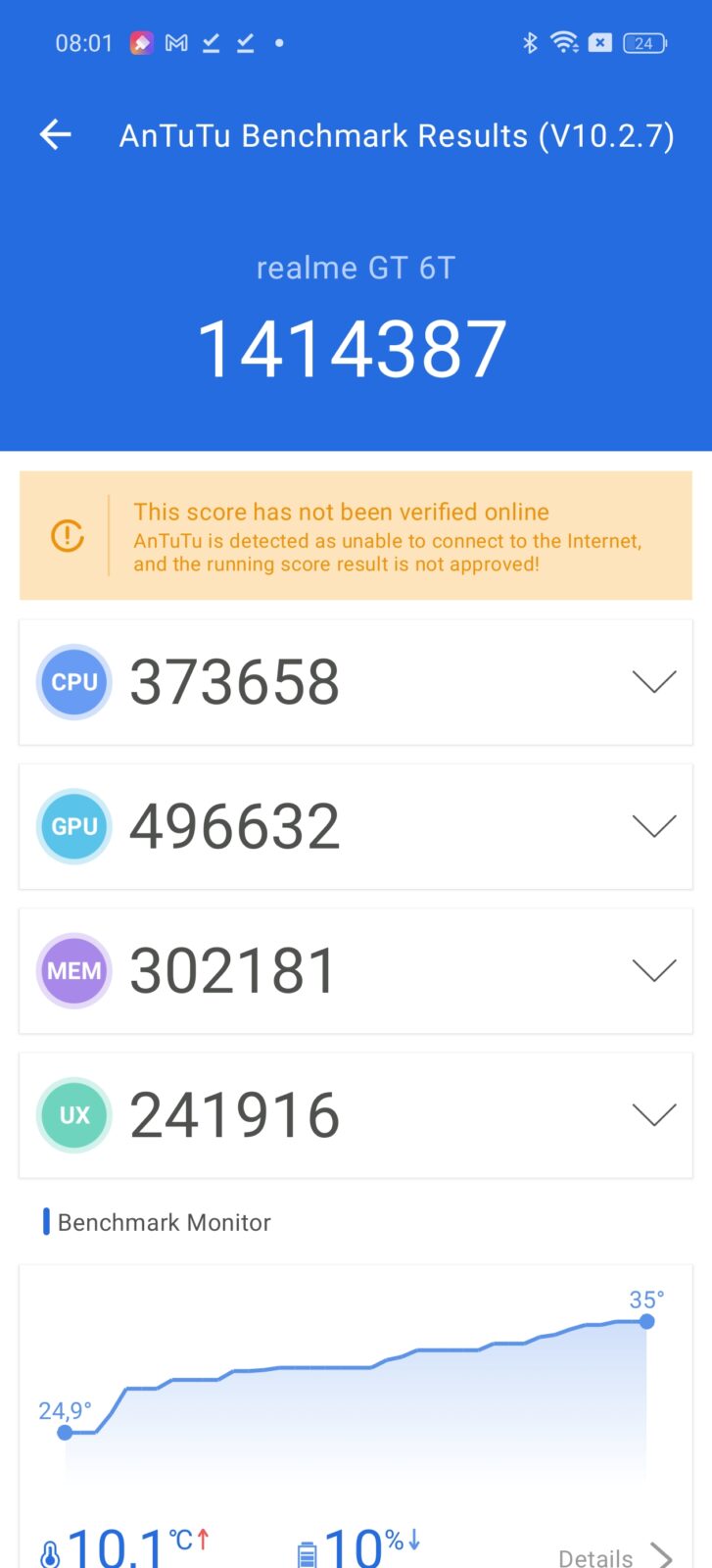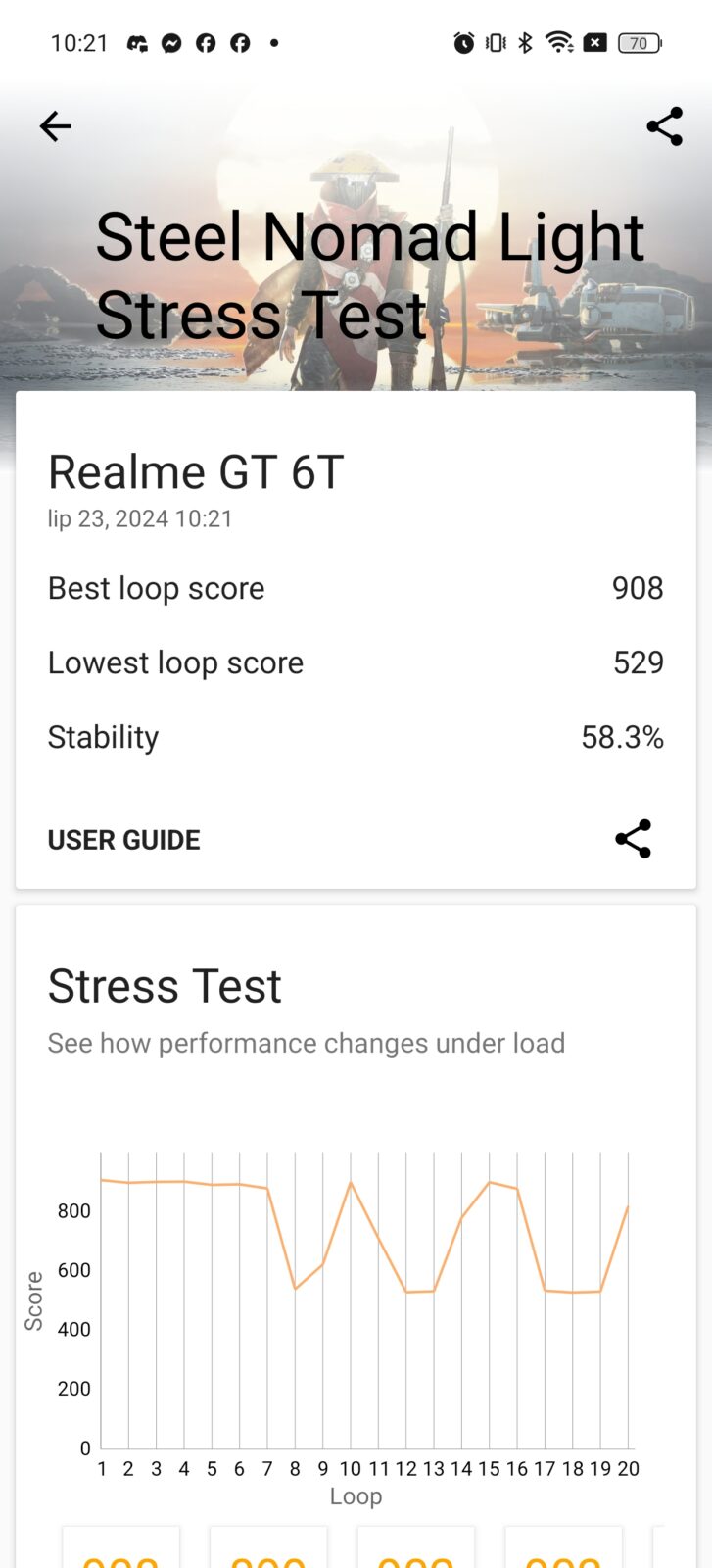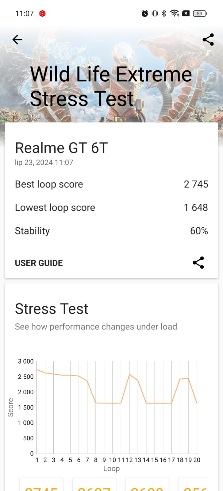 Smartfony ze średniej półki niby mają dostawać aktualizacje przez lata, ale potem te stają się ponurym obowiązkiem dla producentów, którym się nie spieszy. W przypadku realme GT 6T ewidentnie producentowi zależało na poprawie początkowych problemów, bo przez miesiąc dostałem 3 aktualizacje, z czego tylko jedna aktualizowała łatki bezpieczeństwa, a pozostałe miały poprawiać wydajność. To faktycznie się udało, bo smartfon przechodzi teraz przez stress testy, z którymi miał problem na początku.