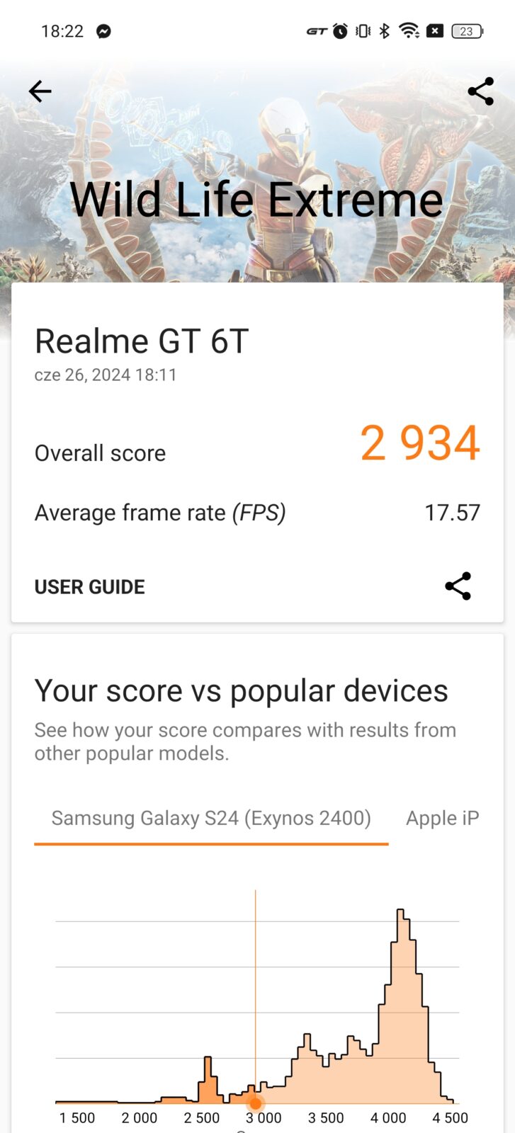 Gdyby na specyfikację spojrzał ktoś, kto o smartfonach słyszy okazjonalnie, pewnie potraktowałby realme GT 6T jako gorszy telefon niż chociażby Nothing Phone (2), bo jego układ to Snapdragon 7+ Gen 3, a nie cokolwiek z ósemką, na przykład 8+ Gen 1. Tymczasem realme przygotowało naprawdę wydajny smartfon, o ile oczywiście pozwolicie urządzeniu na to, by się nagrzało. Smartfon staje się nieprzyjemny w dotyku, bo producent nie zaimplementował limitów, po przekroczeniu których urządzenie przestałoby pracować tak wydajnie. Wykorzystanie tworzywa sprawia, że ciepło w miarę szybko się rozchodzi, ale będziecie potrzebowali chwili, by znów korzystać w pełni.