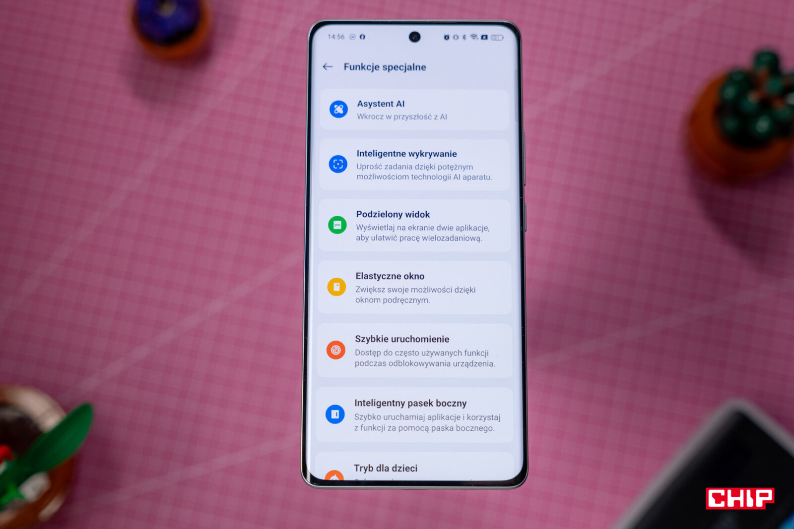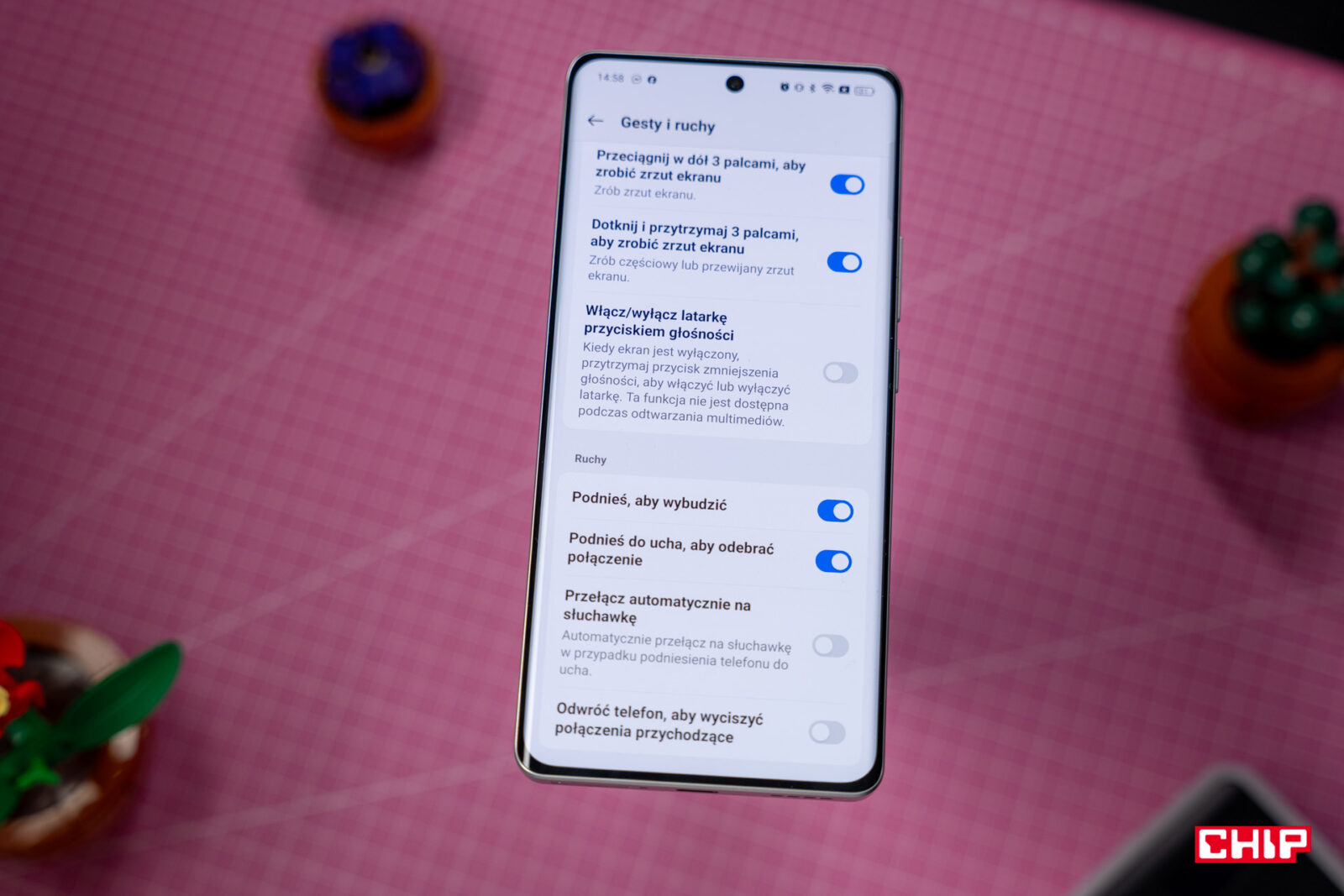 Poza tymi aspektami realme UI przypomina nakładki innych producentów. Znajomo poczujecie się w ustawieniach, które są poszeregowane według segmentów znanych z poprzednich odsłon nakładki. Podobnie wygląda panel powiadomień z przyciskami funkcyjnymi. Podobnie odblokujemy realme GT 6T, który wyposażono w czytnik linii papilarnych działający sprawnie, ale potrzebujący chwili. Rozpoznawanie twarzy działa wolniej i potrzebuje pewnej ilości światła, ale odblokuje ekran nim podniesiecie smartfon sprzed biurka. Są tu jednak pewne dodatki, które zmienią wasze doświadczenie względem telefonów innych producentów.