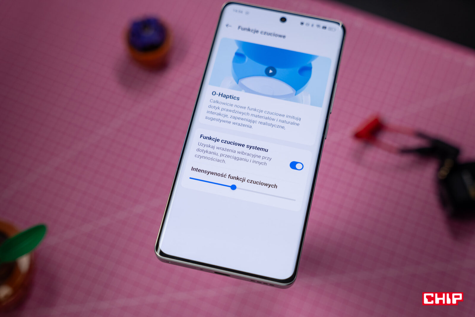 Wibracje w realme GT 6T są haptyczne i biorąc pod uwagę próby niektórych producentów, należy to uznać za sukces. Możemy zmienić moc wibracji, ale na tym kończy się ich personalizacja. To, co dostajemy, uznaję za zestaw konkretny, dobry w precyzji przekazywania tego, którą część ekranu dotknęliśmy, ale w żadnym razie nie wybitny w swojej pracy. Z pewnością część osób doceniłoby więcej mocy, ale przynajmniej smartfon nie przypomina grzechotki przy połączeniu.