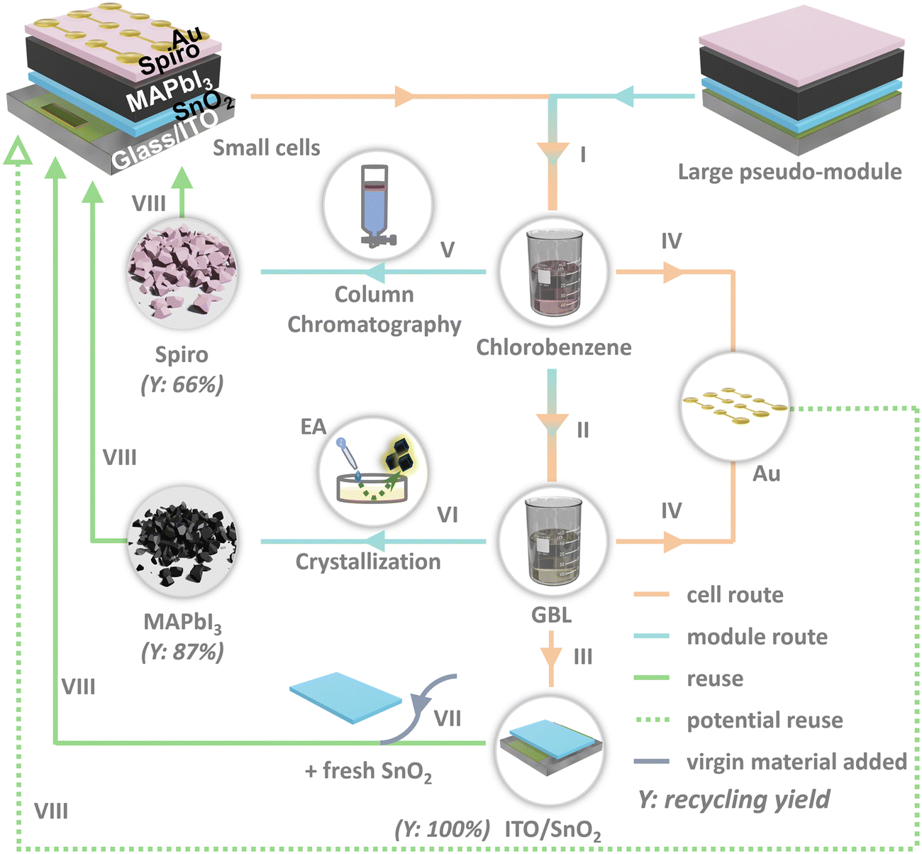 Technika polega na odzyskiwaniu surowców z każdej warstwy perowskitowego ogniwa słonecznego bazującego na absorberze MAPbI3. Podczas jej stosowania używa się różnego rodzaju rozpuszczalników, które usuwają poszczególne warstwy. Następnie prace laboratoryjne sprowadzają się do oczyszczenia lub modyfikacji danych surowców wtórnych celem przywrócenia ich jakości.