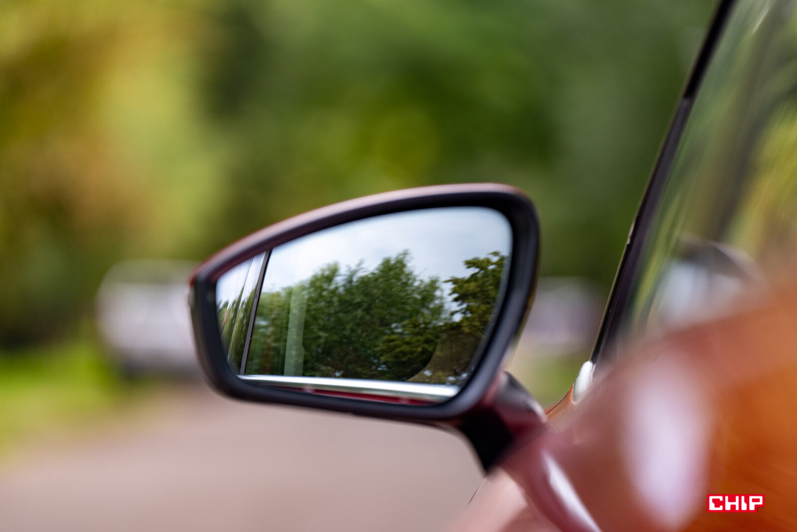 Bryła Skody Enyaq 85 jest trudna do opisania. Najprościej powiedzieć, że to nieco bardziej kanciasty Volkswagen ID.4, z którym dzieli ogromne lusterka. A co za tym idzie, sygnalizacja działania czujników martwego pola znajduje się na ich wewnętrznej stronie i wymaga to nieco przyzwyczajenia. Ale nie każdy wie, jak wygląda ID.4, więc możemy powiedzieć, że Enyaq to z jednej strony kombi, ale SUV, albo że to trochę mini-Van, ale… SUV?