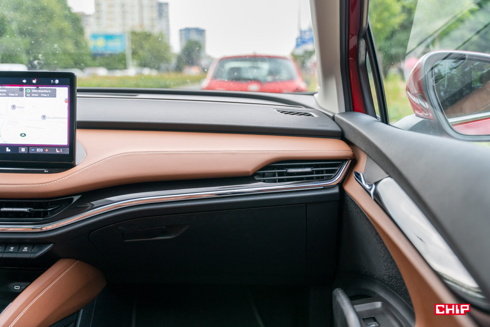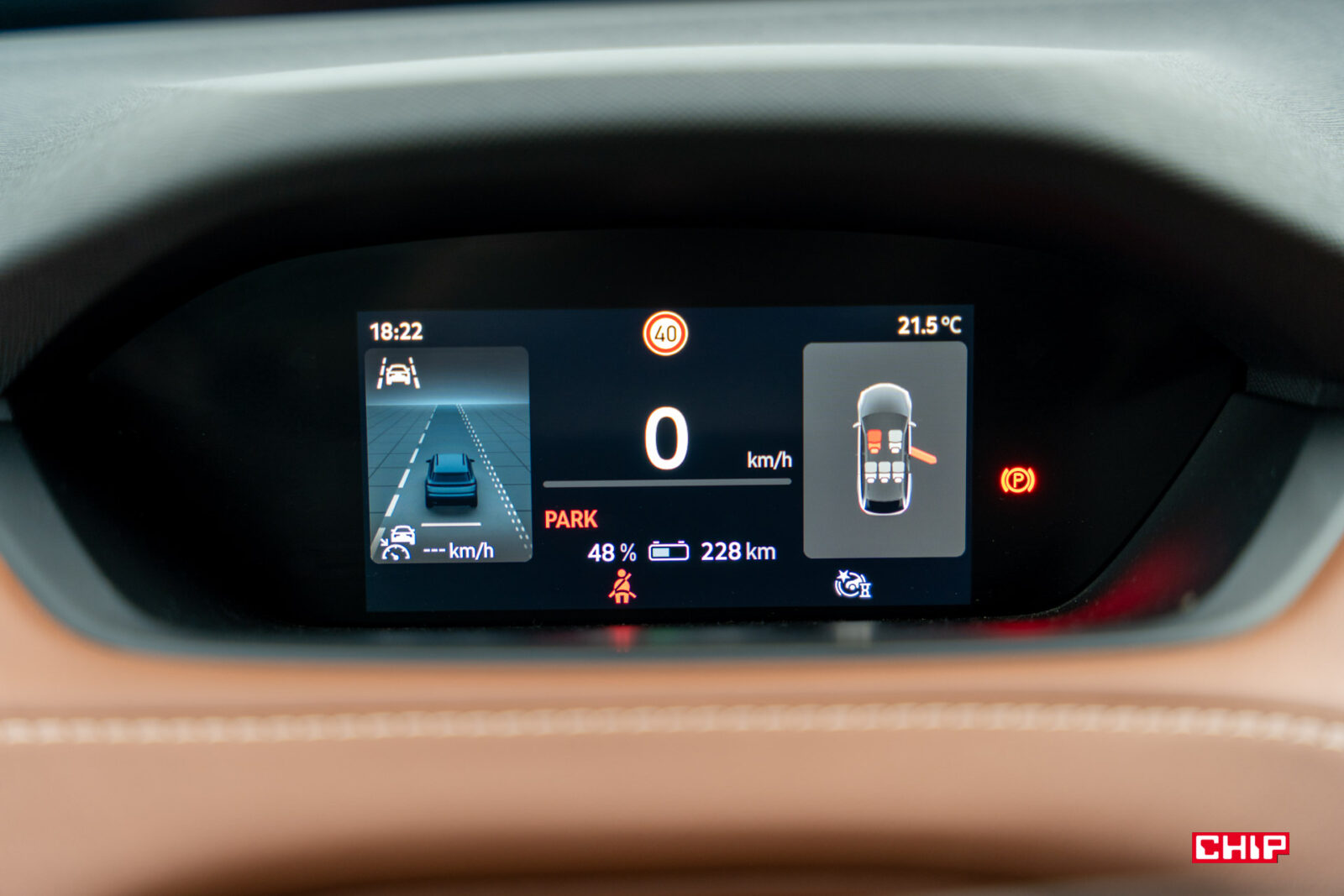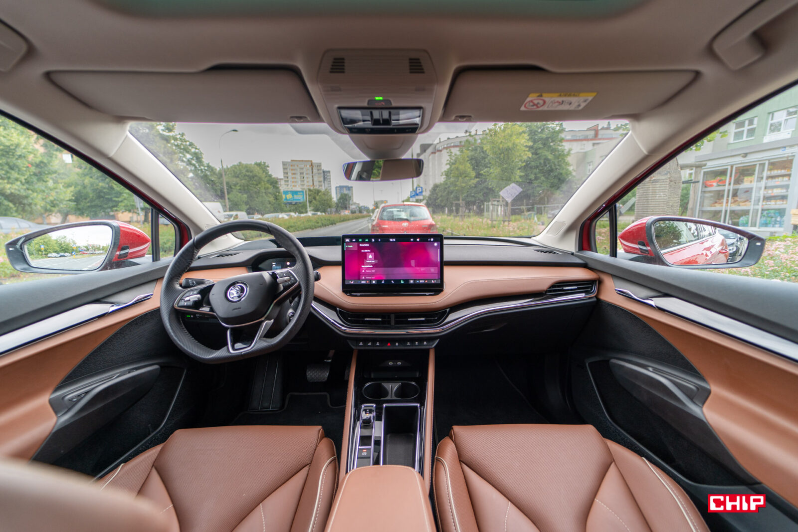 Sam interfejs jest czytelny i prosty w obsłudze. Co ważne, choć jest taki sam jak w Volkswagenach ID, działa nieporównywalnie lepiej. Tutaj nic się nie wiesza, ani nie każe na siebie czekać. Szkoda tylko, że regulacja głośności odbywa się za pomocą dotykowych pól pod ekranem, ale do dyspozycji mamy kilka fizycznych przycisków.