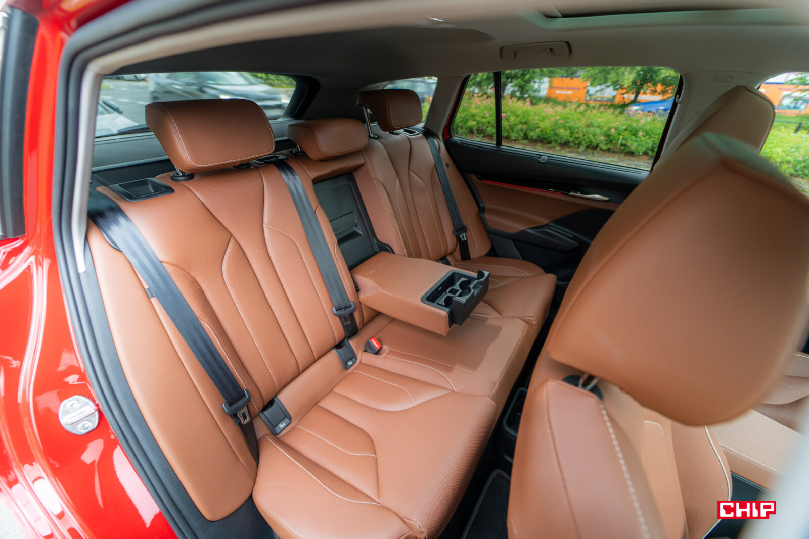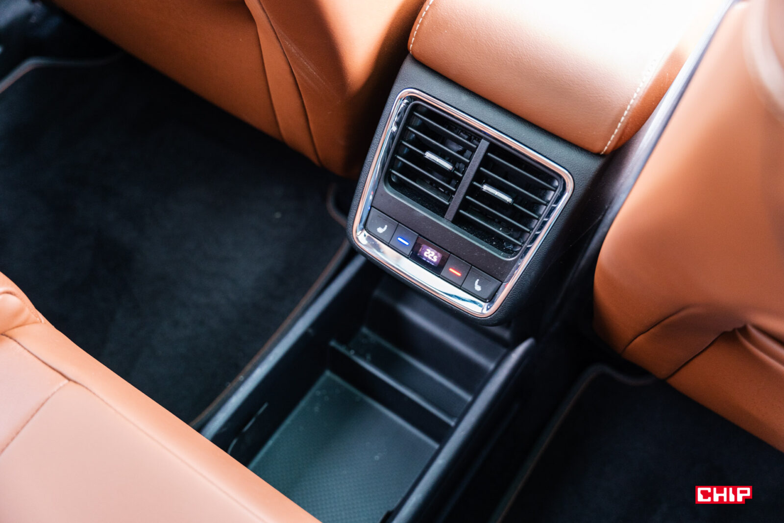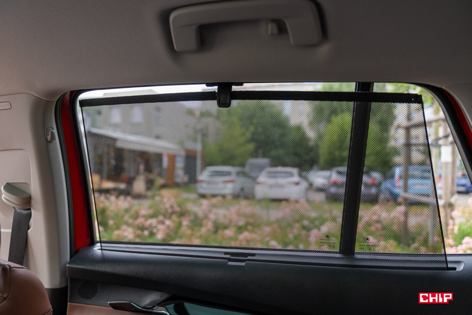 Pomimo tego, że deska rozdzielcza jest ogromna i bardzo mocno wystaje do wnętrza, Enyaq jest przestronnym autem. Jeśli siedząc z przodu spojrzymy przez ramię to dosłownie końca nie widać. Nie inaczej jest z tyłu, gdzie mamy dużo miejsca na nogi i nad głową. Dodając do tego wygodne fotele i tylną kanapę, to idealne auto na dłuższe podróże. Taki żarcik przy elektryku… Pasażerowi ze tyłu mają dostęp do portów USB-C, panelu sterownia klimatyzacją oraz gniazdka 230 V o maksymalnej mocy 150 W. Brawo!