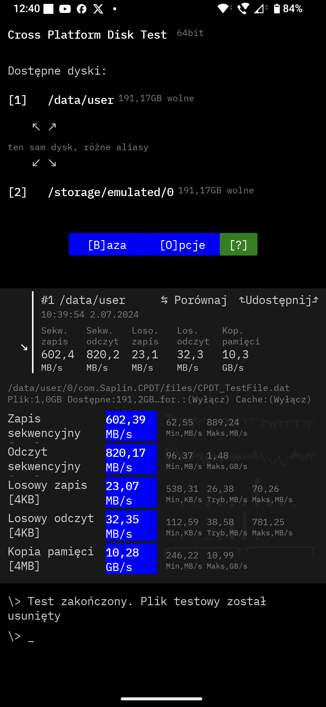 - szybkość ciągłego zapisu danych: 602,39 GB/s,