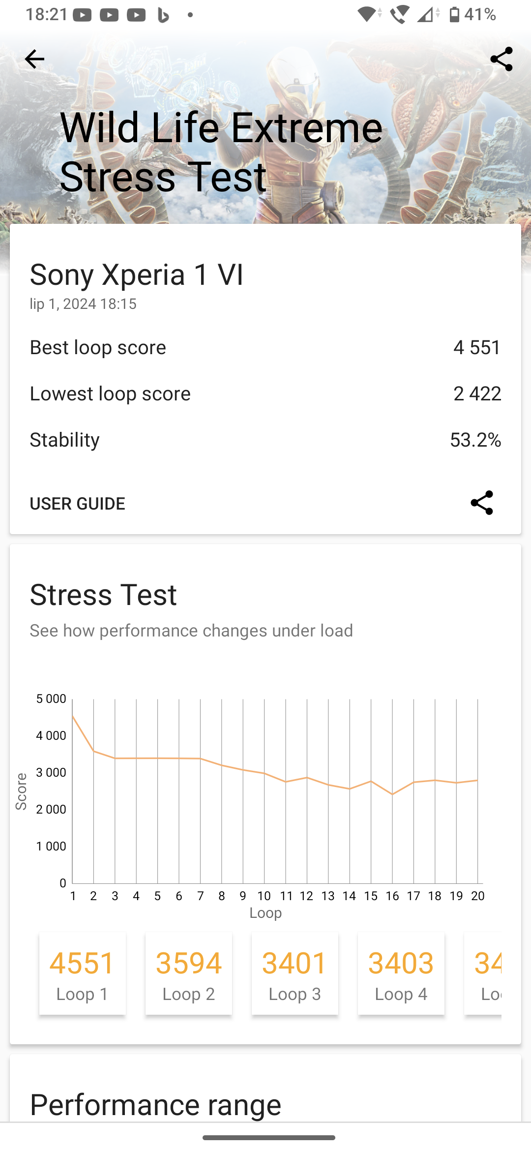 - Wild Life Extreme Stress Test: 4551/2422 pkt, stabilność 53,2%