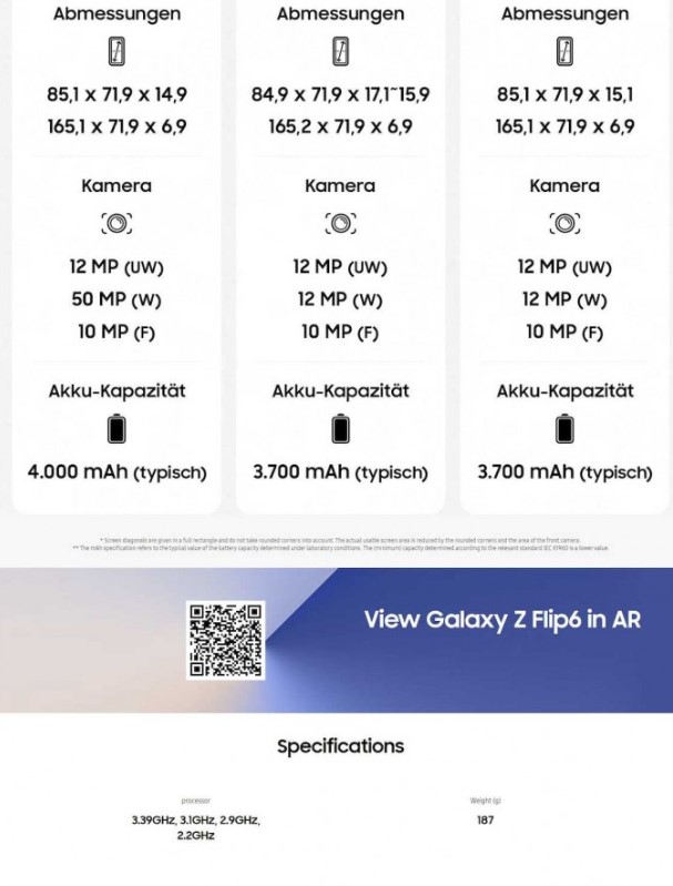 Z dodatkowych informacji warto też wspomnieć, że zarówno nowy Flip, jak i Fold, zostaną wyposażone w boczny czytnik linii papilarnych, głośniki stereo, obsługę dwóch kart SIM i opcje łączności, takie jak 5G (sub-6GHz), Wi-Fi 6E, Bluetooth 5.3, NFC i port USB 3.2 Gen 1 Type-C. Pojawić się ma też obsługa Samsung DeX, ale wyłącznie w Galaxy Z Fold 6.