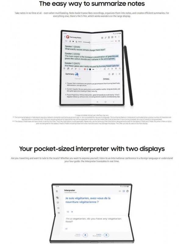 Sercem Galaxy Z Fold 6 i Galaxy Z Flip 6 będzie układ Snapdragon 8 Gen 3 wspierany przez 12 GB pamięci RAM i 256 lub 512 GB pamięci masowej. Fold ma ponadto pojawić się w wariancie 1 TB. Oba modele działać będą pod kontrolą Androida 14 z nakładką One UI 6.1.1, wprowadzającą na ich pokład funkcje sztucznej inteligencji Galaxy AI. Będzie więc można korzystać z Circle to Search, Tłumaczeń na żywo czy podsumowań notatek. Co ciekawe, nie ma tu wzmianki o nowych funkcjach, a wcześniej sporo czasu poświęcano im w przeciekach.