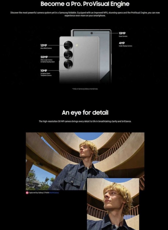 Zewnętrzny panel będzie o 0,1” większy, osiągając rozmiar 6,3”, podczas gdy ekran składany pozostanie przy 6,7”. Oba oferować będą częstotliwość odświeżania 120 Hz i szczytową jasność do 2600 nitów. Jeśli liczyliście na ulepszenia aparatów, to najwyraźniej ograniczą się one tylko do Galaxy Z Flip 6. Galaxy Z Fold 6 pozostanie przy znanym z poprzednika zestawie, na który składać się będzie aparat główny 50 Mpix, ultraszerokokątny 12 Mpix i teleobiektyw 10 Mpix z 3-krotnym zoomem optycznym. Aparaty do selfie to wciąż 10 Mpix w ekranie zewnętrznym i 4 Mpix w składanym.