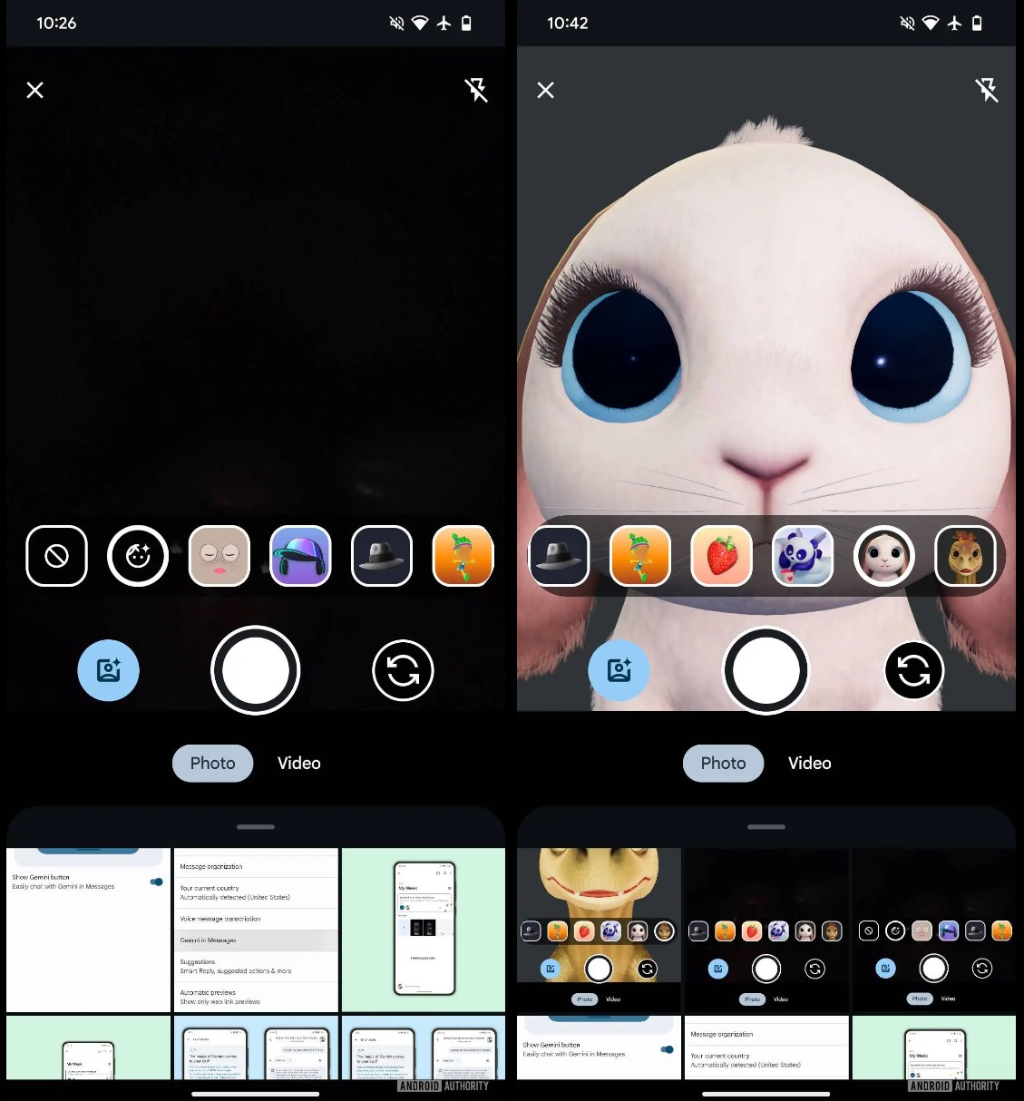 To ulepszenie przyda się zapewne wszystkim, którzy będą chcieli skorzystać z innej, opracowywanej właśnie nowości – filtrów dodanych do aparatu w aplikacji. Znajdziemy je w interfejsie użytkownika, gdzie odpowiednia ikona pojawi się po lewej stronie spustu migawki. Na początku do wyboru będzie dziewięć filtrów, które nałożymy na zdjęcia lub filmiki. Google pozwoli nam zmienić się w królika lub dinozaura, dokonać podstawowego retuszu fotki, czy też dodać sobie kapelusz. Nic specjalnego, ani odkrywczego, chociaż można się spodziewać, że z czasem opcji będzie tu więcej.
