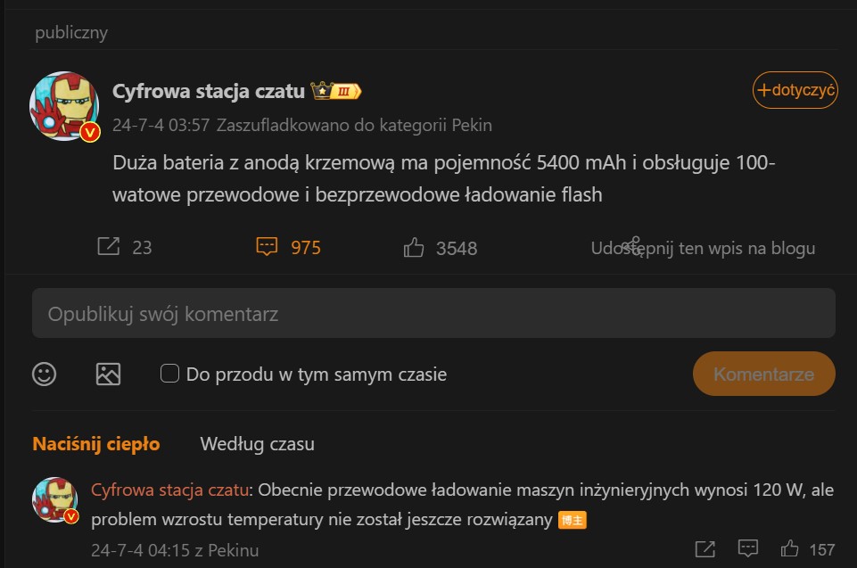 Xiaomi 15 Pro można będzie – wg tego samego przecieku – z mocą maksymalną 100 W i to zarówno przewodowo, jak i bezprzewodowo. Sample inżynieryjne w testach ładowane są przewodowo nawet z mocą 120 W, ale – jak podaje Digital Chat Station – występują problemy z temperaturą podczas tego procecesu i jak na razie nie udało się ich rozwiązać, co stawia pod znakiem zapytania dostępność takiej mocy w urządzeniach, które trafią do sieci sprzedaży.
