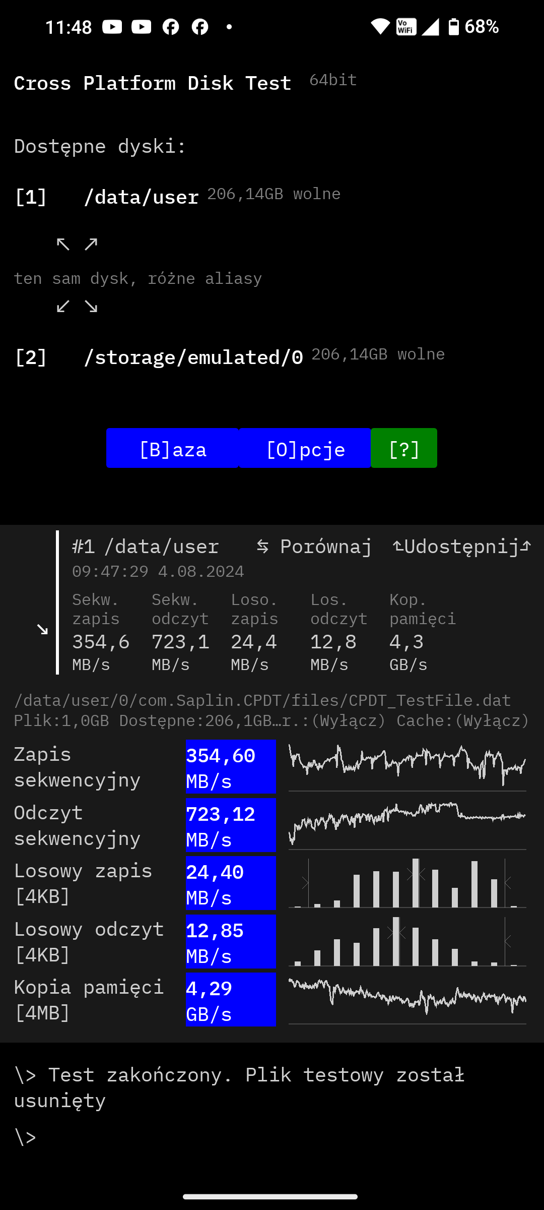 Nothing nie podaje, w jakim standardzie pracuje pamięć flash w CMF Phone 1 – prawdopodobnie jest to popularny UFS 3.1. Wyniki testów szału nie robią, ale wziąwszy pod uwagę cenę smartfonu – jest całkiem nieźle. Z pewnością nie jest to wąskie gardło urządzenia.