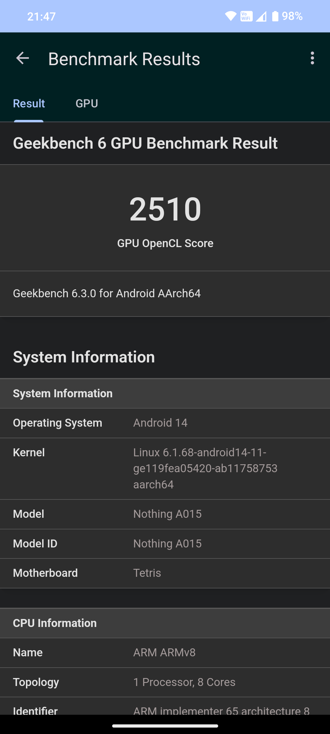 - Geekbench 6 Compute OpenCL: 2510 pkt