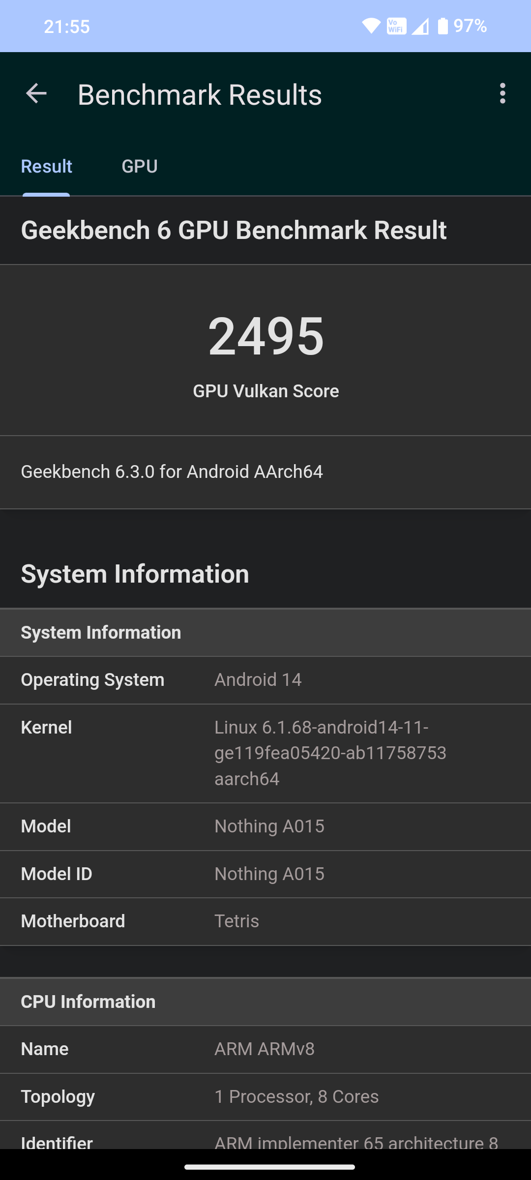 - Geekbench 6 Compute Vulcan: 2495 pkt