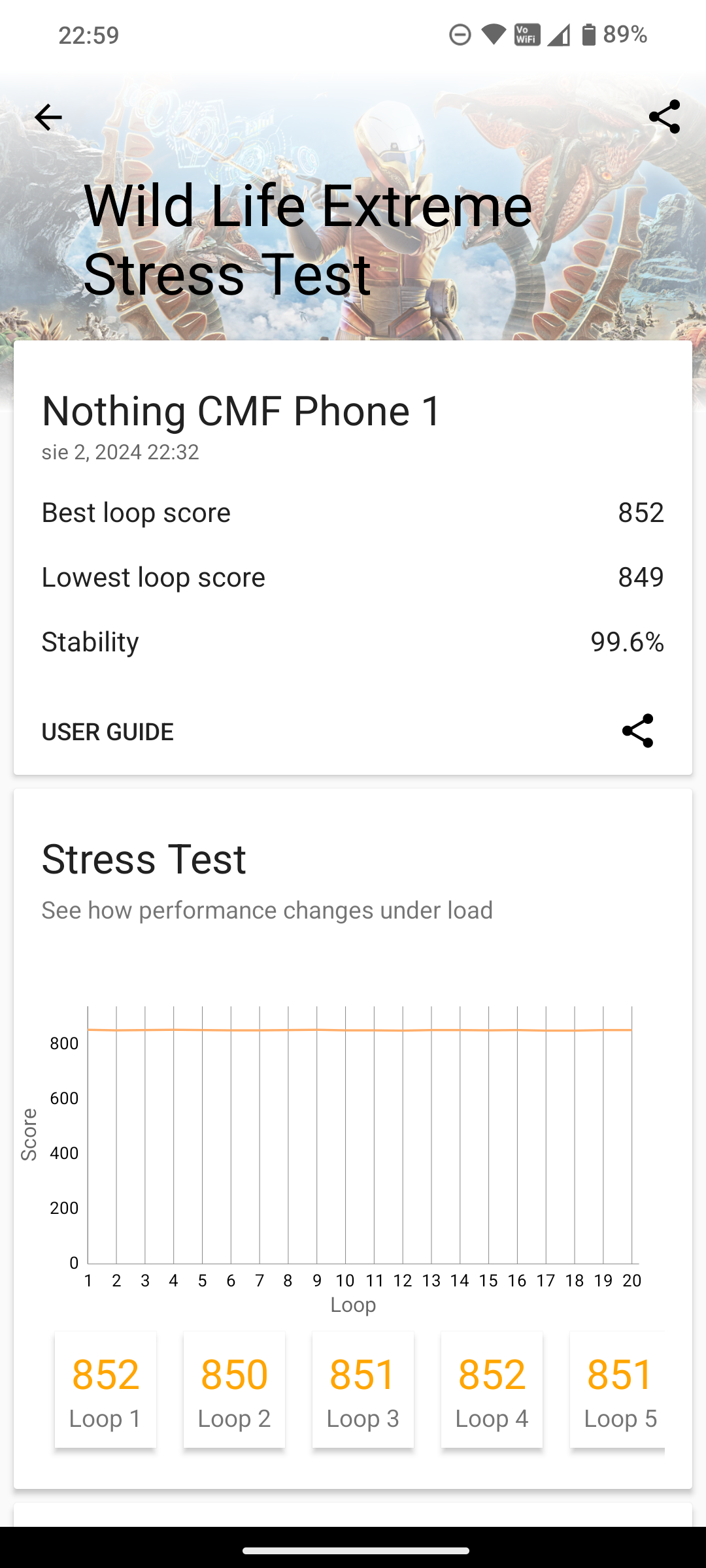 - Wild Life Extreme Stress Test: 852/849 pkt, stabilność 99,6%