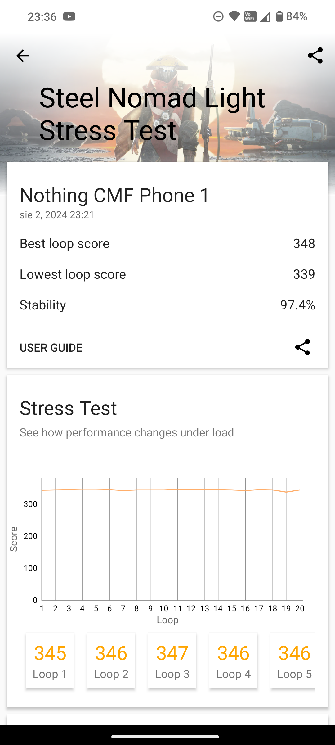 - Steel Nomad Light Stress Test: 348/339 pkt, stabilność 97,4