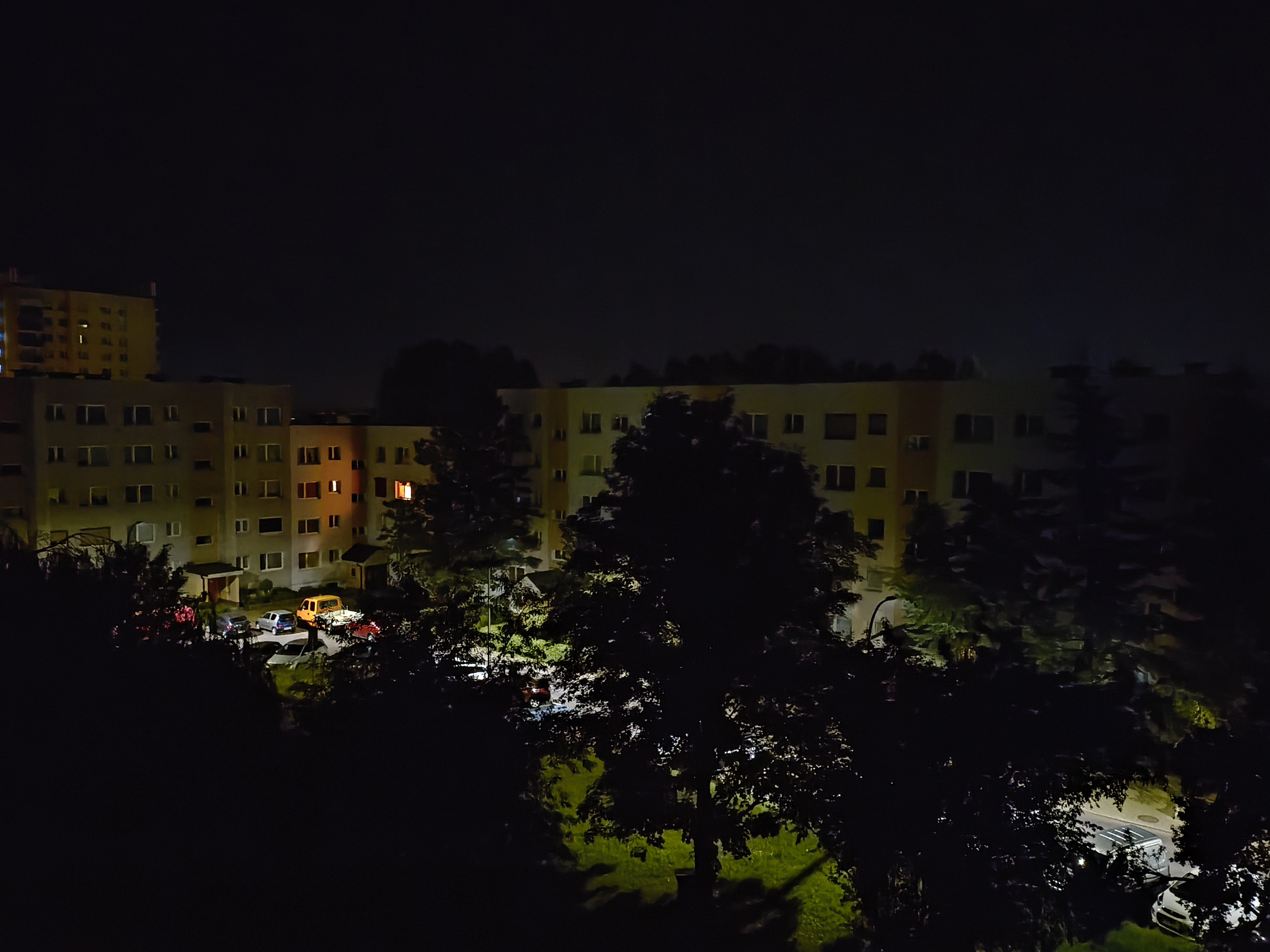 Efekty działania trybu nocnego są przyzwoite, ale nic ponadto. Zdjęcia mają prawidłową kolorystykę, ale bardzo umiarkowaną szczegółowość i ostrość, wynikającą częściowo także z braku sprzętowej stabilizacji obrazu. Część zrobionych przeze mnie zdjęć była wyraźnie poruszona, mimo prób trzymania smartfonu możliwie stabilnie. Na plus przemawia brak wyraźnych artefaktów mimo sporej ziarnistości obrazu.